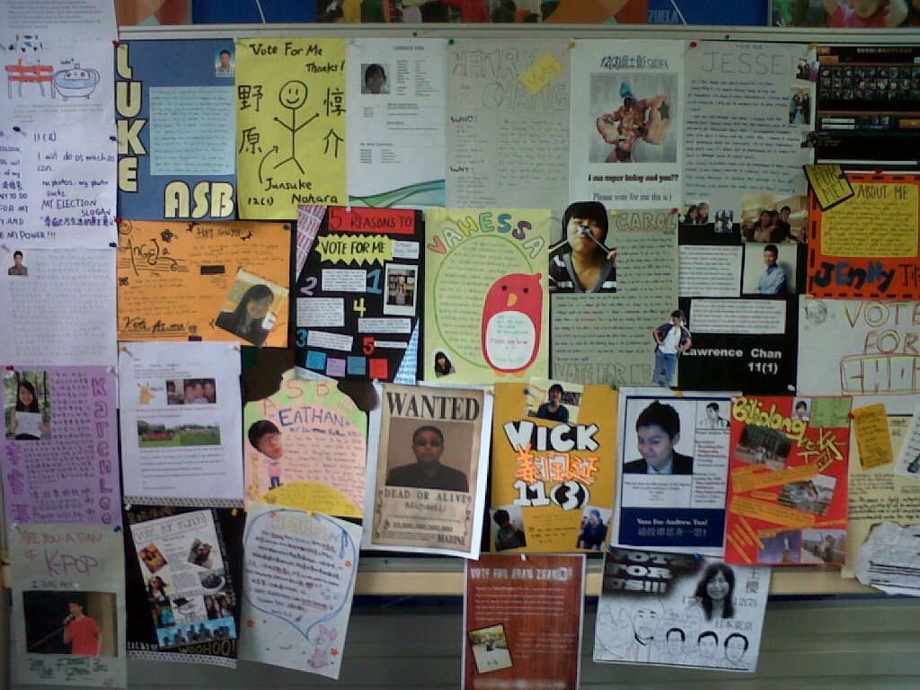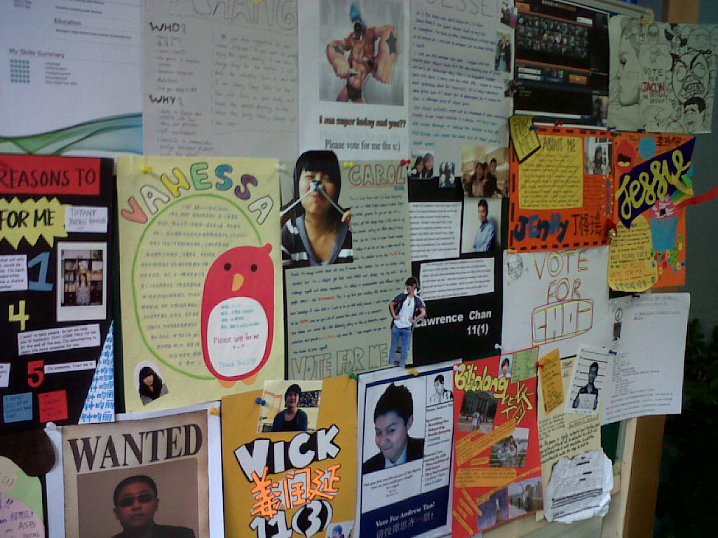 The election of ASB of grade 11 will be held on 9/19. The candidates of each homeroom posted their self-introduction in the lobby of Xianmian Building.