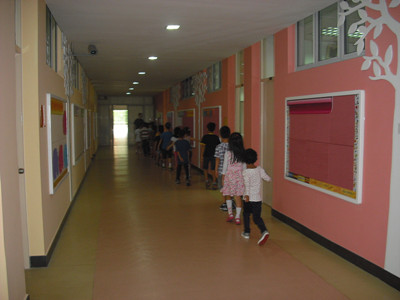 During the first week, there are lots of training classes for first graders . Look! We are practicing lining up and getting ready to give it a shot! We practice in the classroom, hallway, and playground. Though it's just been only a short time, we are on the way! Go Go!