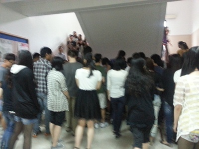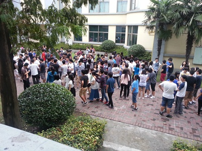 On Sep. 5th, 2012, the senior high school carried out a Fire Drill. The fire alarm went off when all students were having CAS classes at Xian Mian Building. With the teachers’ guidance and evacuation route on the wall, they quickly rushed out of the building. Students were watching movies on how to survive in the fire or an earthquake and the homeroom teachers have already explained the guidance route, so the Fire Drill is carried our orderly.