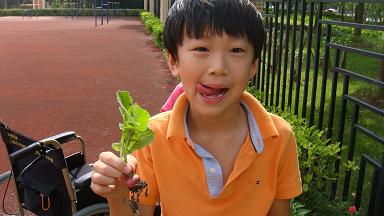 We had our harvest finally! We mentioned we had our own grade garden in May’s news. In the past one month, 2nd graders didn’t skip one day without watering and taking care of our garden. After all those hard work, our harvest finally came. 2nd graders were so excited, searching for their fruits in the garden. It didn’t take long time to find their pepper and radish. 2nd graders’ happiness can’t be described. We washed that green green pepper and shared with everyone during lunch time.