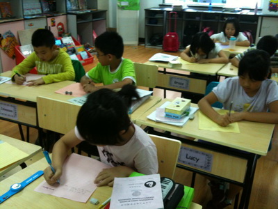 We had an interesting vote for class titles on this week's Personal Growth class! We should write down our classmate's name on the blanks. We couldn't write a persons name twice. Here are some examples: __________likes pizza, _______loves bugs, and ________is a little gentleman. It was really fun! I got the title "teacher's pet". I hope we will do it again in 4th grade!