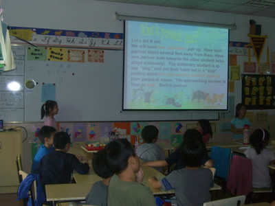 The third graders were learning how to get along with others during Personal Growth class. The homeroom teachers told them how to respect others by using respect words and respect actions. They invited some student volunteers to act it our in the front of the class. The students felt fun and acquired some social skills. We all hope these skills will benefit their life in the long run.