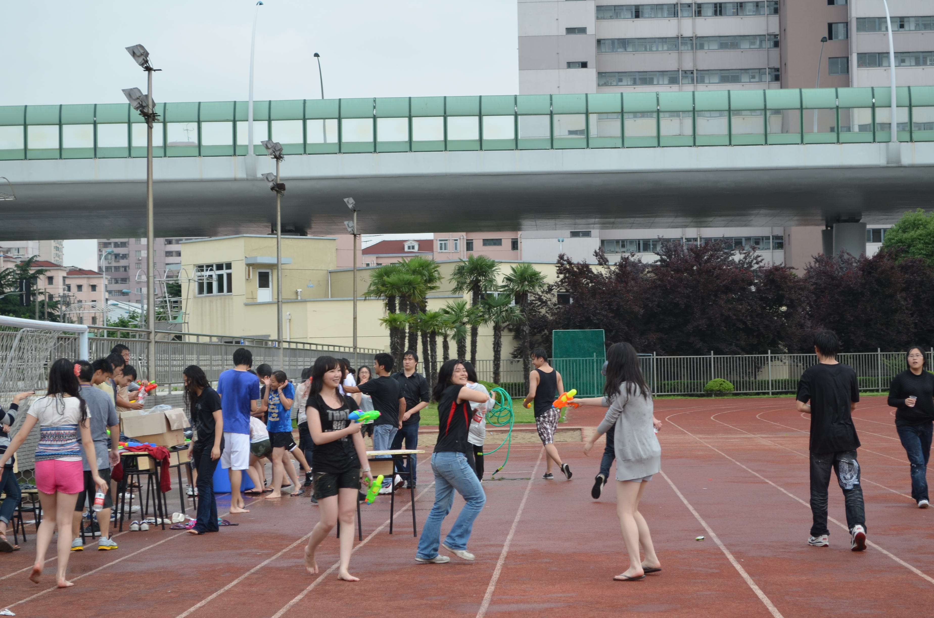 Starting from 2:50, students and foreign teachers are against each other on the rugby competition. This match, to a large extent, strengthens the friendship between teachers and students. At 4:00, the water fighting starts, which is a nice way to celebrate the coming of summer. Later, there will be band performance at 7:00, given by the foreign teachers, which will bring us another climax of the summer bash.