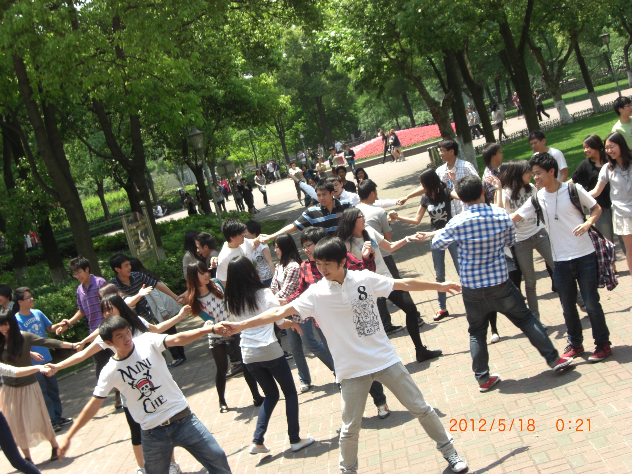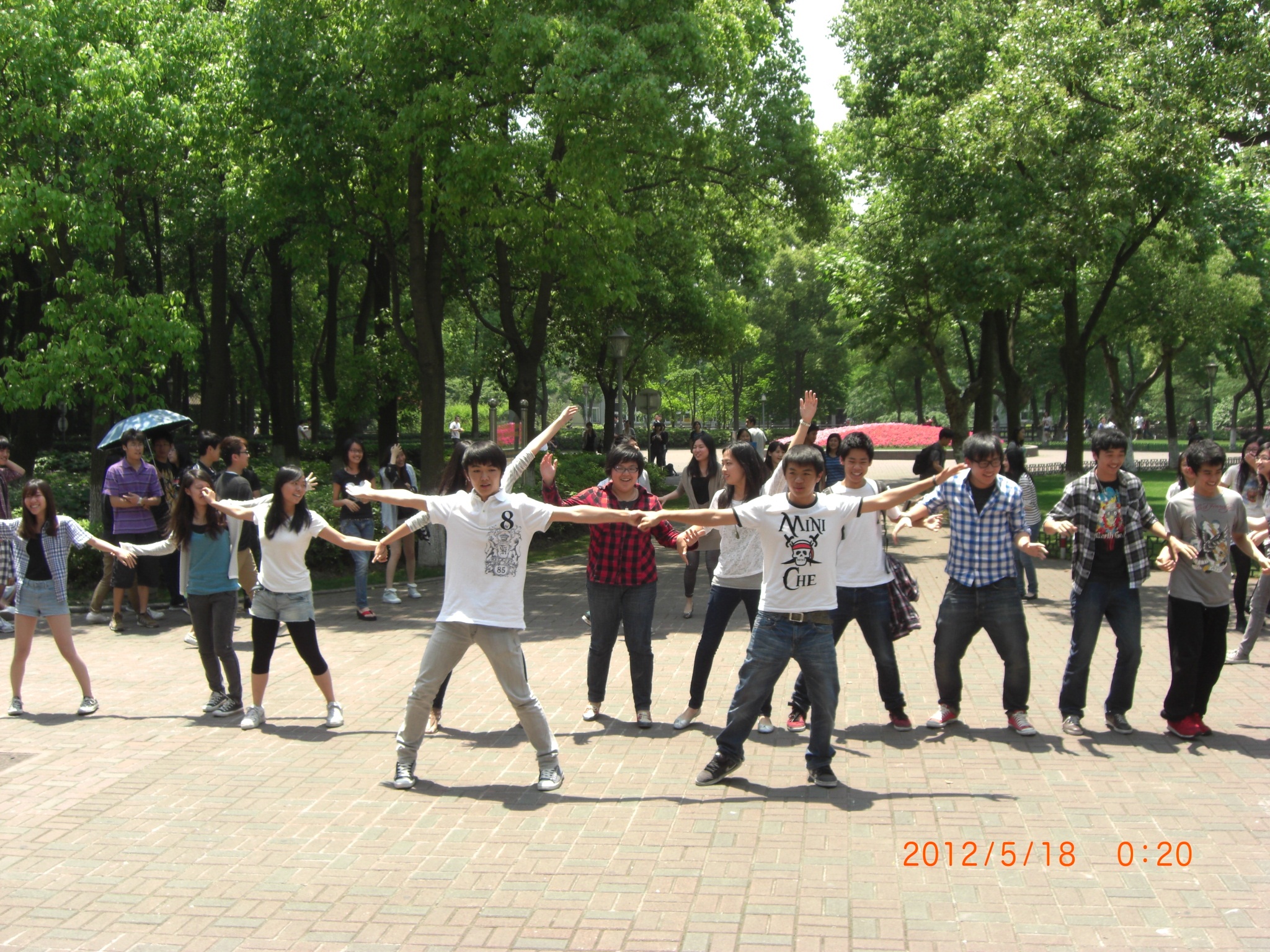On Friday noon, graduates gathered in front of the Xianmian Building to wait for the hostess. Around half past twelve, the hostess came up. The leader of the Flash Mob started the music and the group dance. It was done to celebrate the birthday of the hostess! Happy Birthday to her & happy graduation!