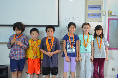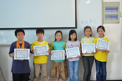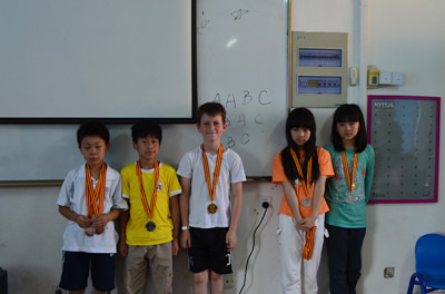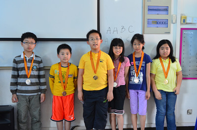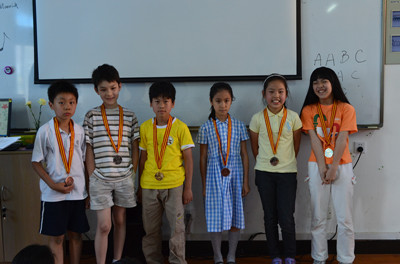 Last Friday, G4 had the Sports Meet Award Ceremony in the music room. Class 4-1 won the first place of Relay Race and Class 4-2 won the Obstacle Race. The students who got golden medals in different items are as follows: