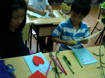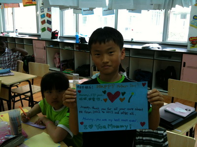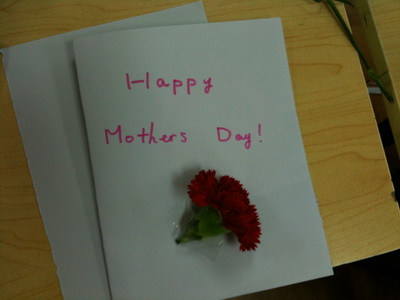 Mother's day is coming. We should do something for our mothers. We have already made mother's day cards in this week's personal growth class! The cards came in all shapes, square, triangles, hearts, rhombus etc. Our teachers also bought us some flowers to let us give it to our mothers together with the cards we made. My mom was very happy to receive them. We hope our mothers will be happy everyday!