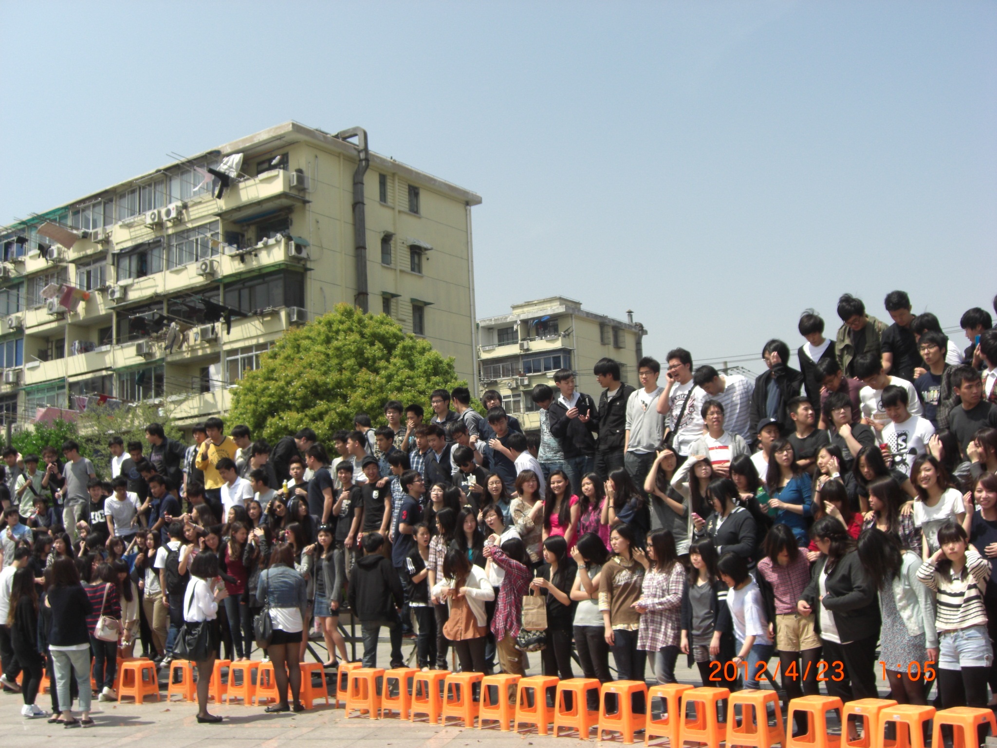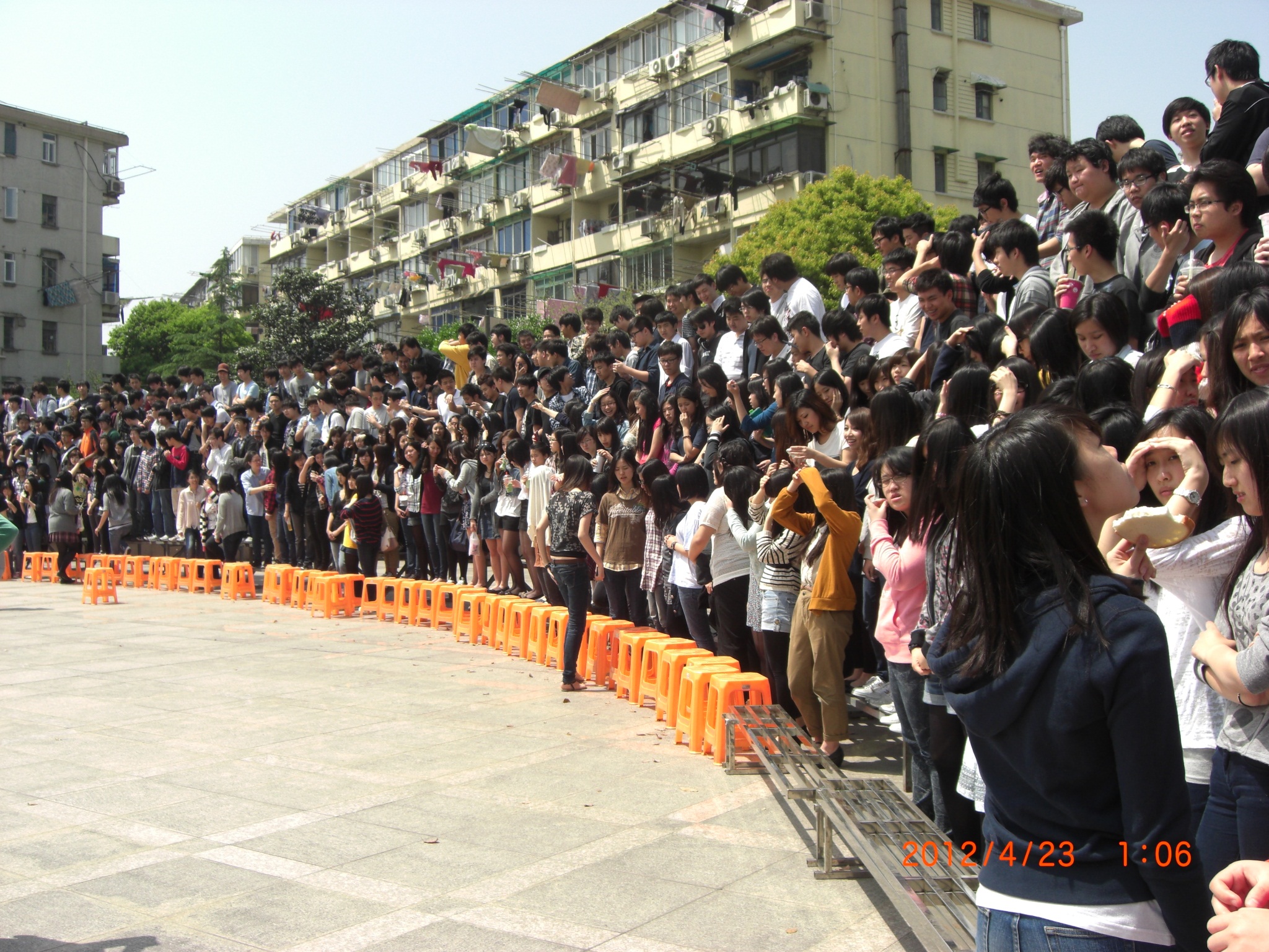 During the fifth period of April 23, all of the teachers and students from the high school section took the "family photo". Students were well trained and it took them less than twenty minutes to finish the shooting of the group photo with more than 500 persons.