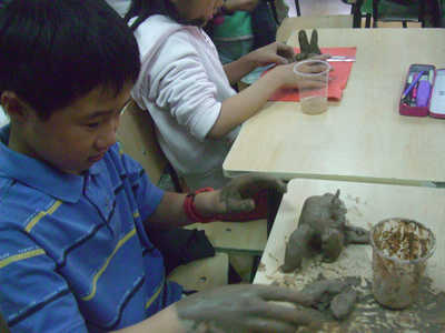 The Art Class is always full of fun. This week the third graders made their own clay models. There were cartoon figures, teapots,cups and so on. Nobody's work was the same one with anyone else's. They were very creative and enjoyed doing the project. What made their teachers feel so proud of them was they were volunteered to clean the classroom after finishing the project. Every one loves their homeroom.