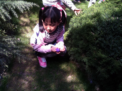 The first graders had an egg hunt on the campus this week. An Egg hunt is a traditional activity celebrated on Easter Day. The students learned about Easter Day in personal growth class, and teachers told them that the Easter bunny prepared 2 Easter eggs for each student and that they needed to find them. The students all went to the garden and tried their best to find eggs there. We had fun on that day.