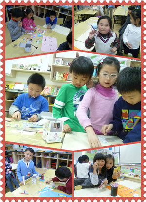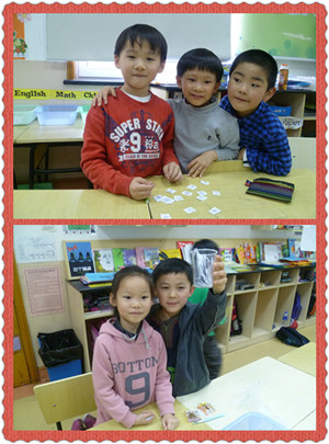 The first graders are learning about American coins in math class. We had a Math Fair to help our students apply what they’ve learnt to practical use. A piece of paper with coins written on was given to the students days before the fair and they made their coins by gluing the front and the back of the coins together. At Math fair, our classes were divided into several groups and the group members took turn to be sellers and buyers. Everyone stared at the price list and considered what to buy and how much money they needed. Everyone had a good time during the math fair. (Article: Ellen; Picture: Ellen)