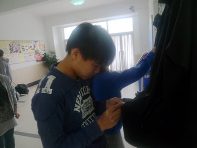 Students were very interested in the new coats and quite a few tried the clothes.