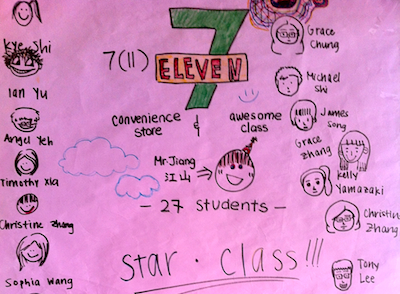 Still remember the theme poster of each homeroom last month? By the fair,just and open judgement of the four foreign teachers from the 7th grade office, the results of the poster design has come out. The six classes gaining the top score are 7(11), 7(1), 7(8), 7(9), 7(5) and 7(6). Here are the poster of 7(11). Students, you found the picture of Mr. Jiang's?