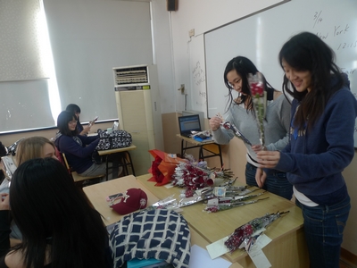 We are very happy to see that students bought the flowers to show love and respect to us.