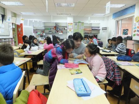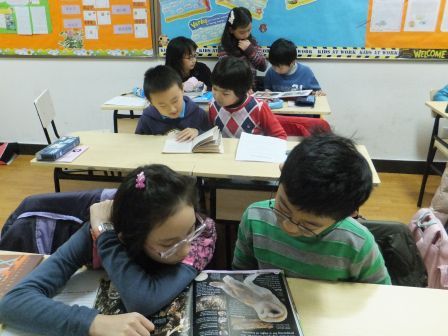 March is the Reading Month in Pudong campus. On Mar 5th, 2012, Pudong fifth graders had the partner reading with the 3rd grade students. G5 students read books for the younger kids, answered their questions and helped finish book report! All of them hope that they could have the similar activity again.