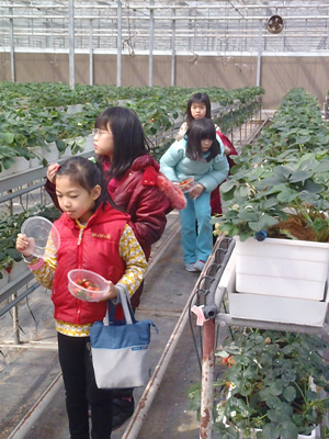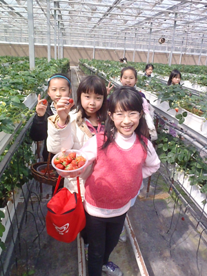In order to get away from the pressures of the monthly tests and the rainy days and to enjoy the beauty of nature along with the fresh fruit, G4 teachers arranged a trip to pick organic strawberrires on Sun Qiao Farm.