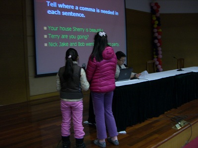 A few days ago, all grade four children for primary school attended an knowledge competition. Knowledge competition is one of the classic activities in grade four P&B class, and this time the game is a bit different, we are no longer held in the class, but in auditorium. Each class will send out two players pitted against each other in competition. The game involves school different subjects, which is very challenging, and the players did very good job.