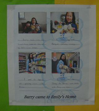 Every week, a student takes class bear, Barry form 2(1) and Bearington from 2(2) home. Over the next week, that student should take or draw pictures and write about things their family does with the bear. The student will need to complete the sheet and bring it back to school. He/she will then share their family’s adventures with the class. This is a very good way to foster kids' sense of responsibility, also to know each other a little bit more outside school.