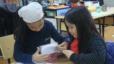 This month’s topic is Reading, so we had our traditional activity Partner Reading. 2(1) was paired up with 4(2), and 2(2) was paired up with 1(1). After pairing up all 2nd graders, they couldn't wait to read stories for each other. They all seemed very happy to have someone new sit by and they could read story to them. Besides that, they could make new friends while reading. They all said they want to do that more often in the future.