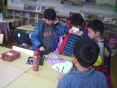 On Tuesday's Personal Growth class third graders were diveded into several groups. They were bustling in the primary school. Sometimes they would take a picture. Actually they were in the trip of treasure hunt. They needed to complete the tasks according to the list. After finishing one, they would take a picture. For example they would find out the best looking door in the primary school and take a picture with it. These tasked required them to pay attention to tiny things and team work spirit as well.Those who first accomplished all the tasks would be titled the winner team.