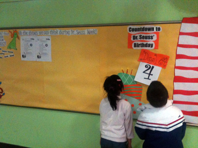 This week is our Dr. Seuss’ week. We will learn all about the writer Dr. Seuss, read many of his magical books, and incorporate his stories into our English as well as Science and Social Studies classes. We will also have these activities:Making Checklists, Learning about Opposites, Learning about Jobs, Reciting Tongue Twisters, Reading – Writing – Recognizing Rhyming Words. On Friday, we will have a birthday party for Dr. Seuss, and share a birthday cake together.