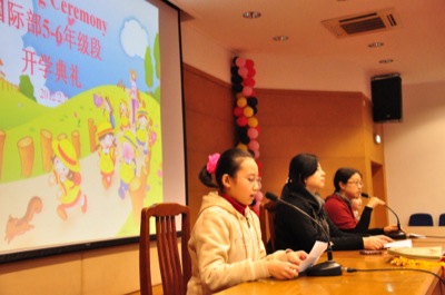 The opening ceremony of grade 5 & 6 was held in the auditorium of primary building at 9:30, Feb. 7th. All the students of grade 5 & 6 gathered together to celebrate the beginning of the new semester. After the wonderful speeches of Ms. Luo, the director, and students’ representative, there came the most exciting part of the ceremony – the prizes rewarding. You can tell the excitement from the expression on the face of each prize-winner. At the same time, all the students were aiming for a high goal this semester and we believe that they will surely reach their goal.