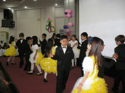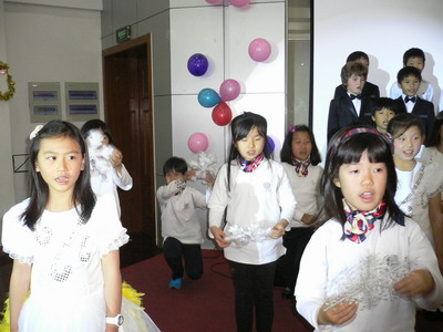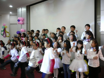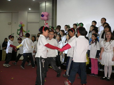 We had an Art Festival this year, and our topic was “Our World”. The first grade was Australia, the 2nd grade was Africa, the 3rd grade was Europe, the 4th grade was North and South America, and the 5th grade was Asia. We sang and danced, and some students had a special performance, such as English drama. After we had done all our songs and dances, we played games with parents and went back to our homerooms to watch a movie!