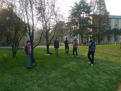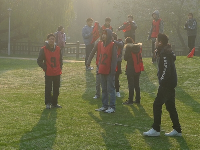 The grass on ground is kind of wet and slippery but students still enjoy a lot.
