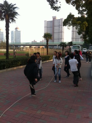 In the CAS class last week, the tug-of-war compitition and the long rope jumping game of the seventh grade were held at the same time. Because it was rush for the CAS class time, there held the long rope jumping game one class after another. Let us look at every class's performance. Look, the girl who taking care of the swinging the rope was so serious and careful. They kept practicing for a long time and formed a tacit understanding between two persons in the end. Boys and girls, regardless of height were jumping with the same jumping rope. However, not every student is able to jump. The class finally gathered together eight individuals. In the cold winter days, they practiced sweating. We competed for the final champion. The championship game was between 7 (10) and 7(8) classes, which are the first prize and the second prize respectively. The game was really amazing! Let's check it out.