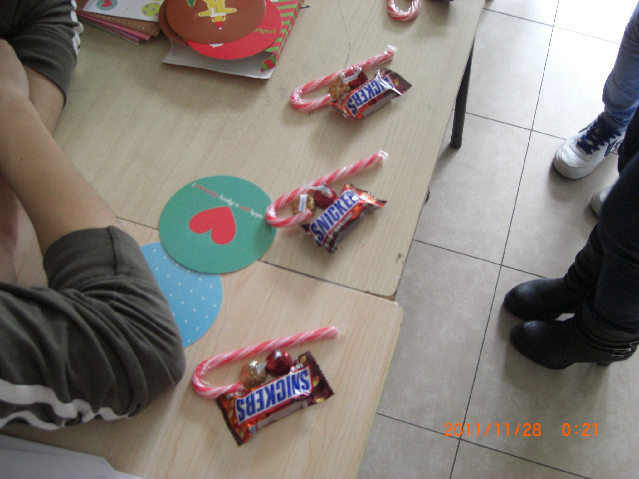 Students can buy a giftbag of candies for their friends and wrote on greeting cards to send their X'mas wishes. The giftbag will be delivered on the last schoolday before the X'mas holiday. All profits will be donated to the pupils in those remote areas in China.