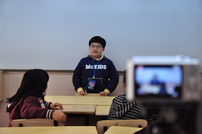 The Art Festival of Grade 5 and 6 is at the corner. While the students were holding a performance audition, some other kids held another audition—Host audition. Seven candidates from different classes took part in the audition on Nov.21th and the winners will have the honor of being the host and hostess in art festival.