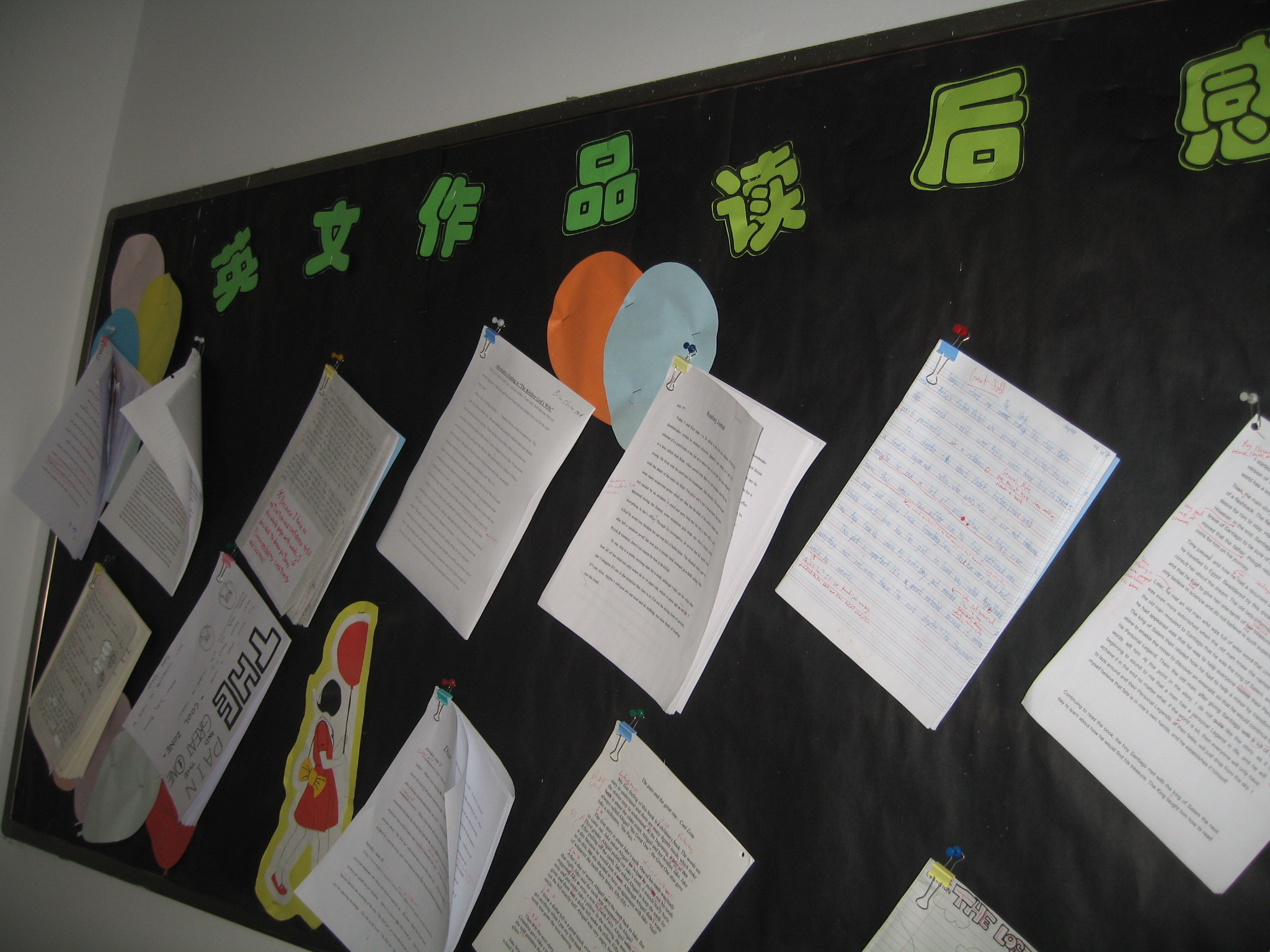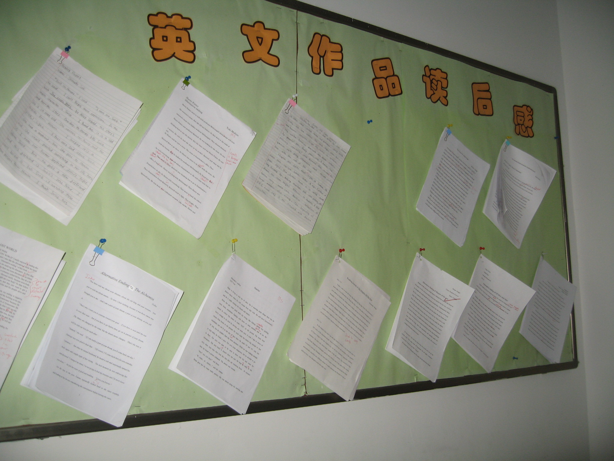 In order to improve the English literacy of each student, we ask students to read an English novel. After reading the book carefully, students write a comment on it. These comments are posted in Zhongxing Building.