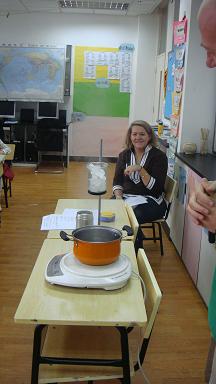 Today in Science, Class 2(1) and 2(2) came together to watch an entertaining lesson about how temperature effects matter. In the demonstration, students observed how adding heat can change a solid to a liquid and a liquid to a gas. Then they learned that a gas can be cooled to become a liquid. The demonstration was intended to help students understand how and why the physical changes of the water cycle occur.