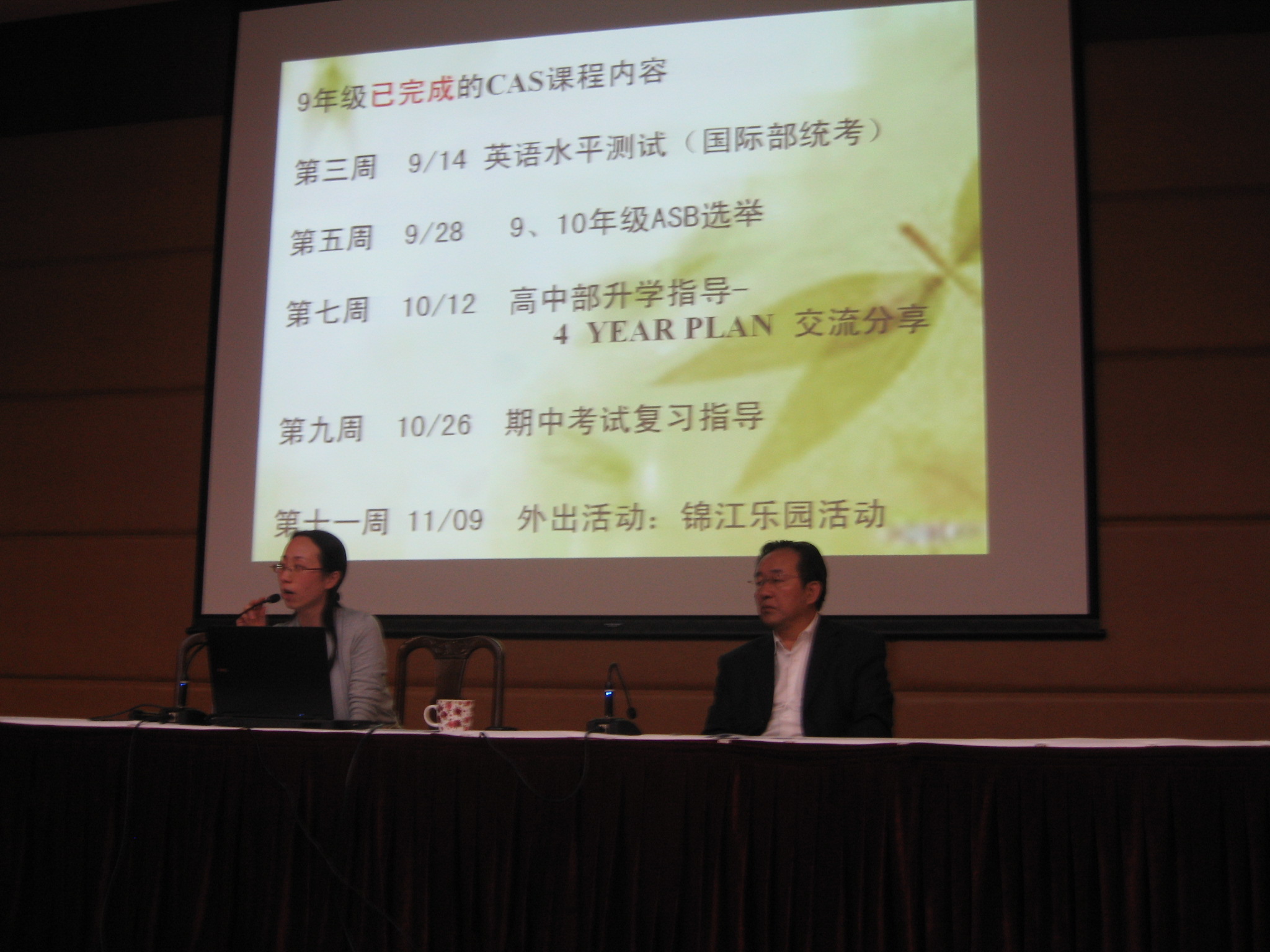 Ms. Su, the supervisor of grade 9, analyzed the midterm examinations and introduced the detailed GPA rules and students management regulations. Ms. Su also told the parents about the arrangement of the activities and how to get ready for the college application since grade 9.