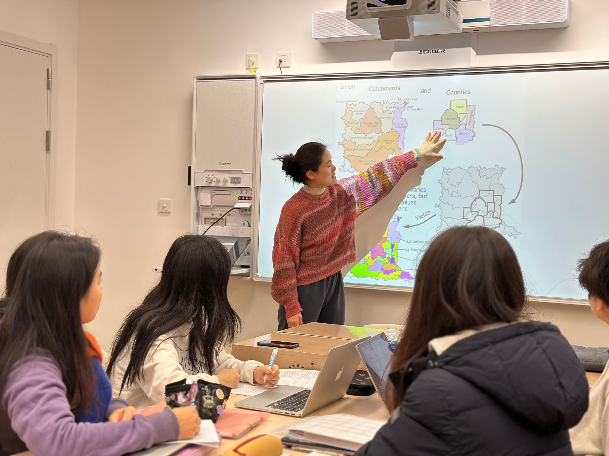 The 11th-grade Geography course highlights the use of advanced GIS software, QGIS, to digitize the Earth and create a cyberpunk-style metaverse. Ms. Zhao instructed students to learn how to solve real-world problems using this powerful tool, such as dynamically visualizing the impact areas of typhoons, planning the school’s golf course with GPS and QGIS, and determining optimal locations through geospatial analysis. Students are guided in exploring human-environment interactions across spatial and temporal dimensions, from macro to micro scales, bringing the Earth and humanity into their grasp.