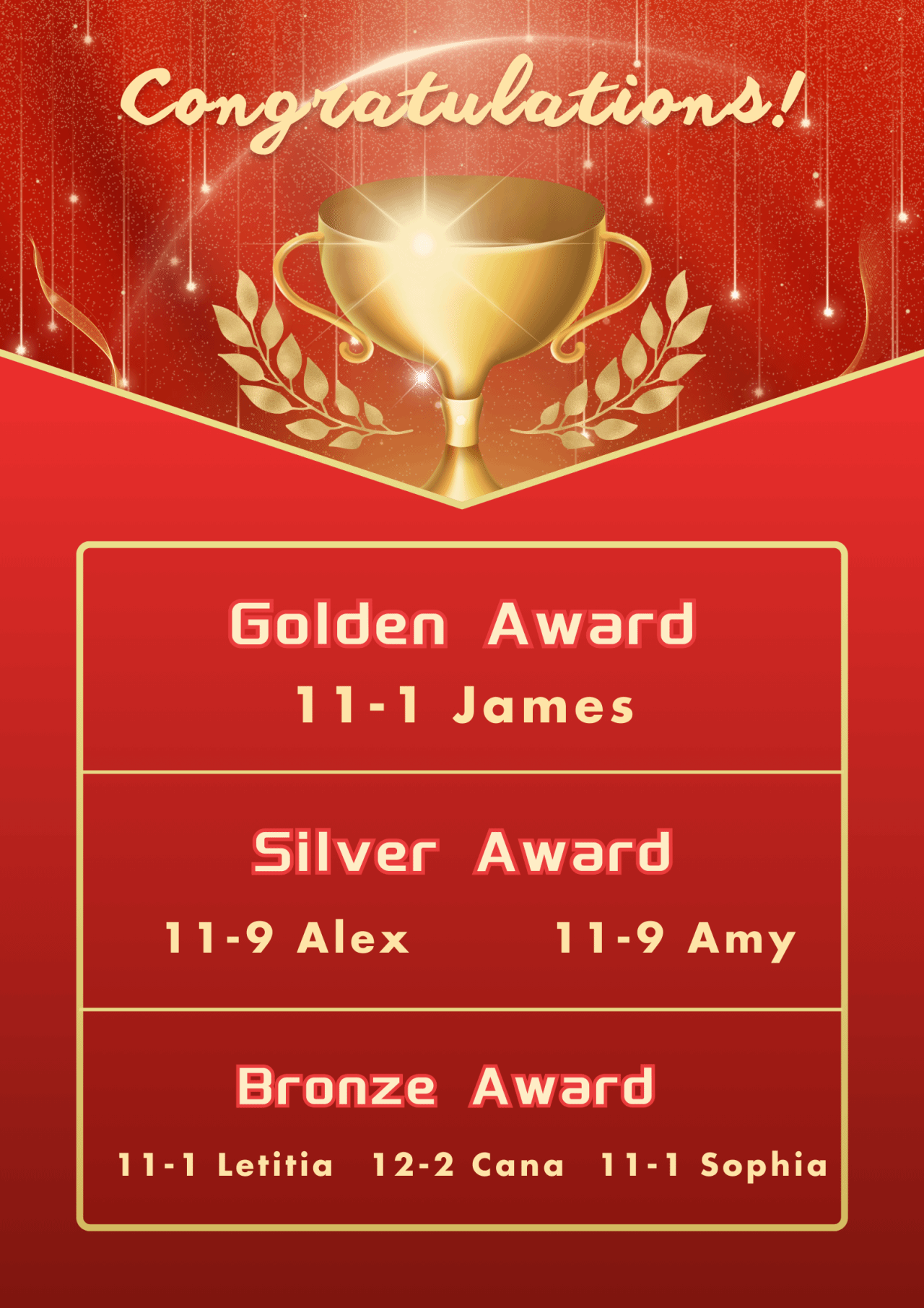 Congratulations to all the award recipients! This speech competition not only provided students with a platform to showcase their public speaking skills but also fostered awareness of critical societal issues. It served as a powerful reminder of the importance of language and public expression. Special thanks to all the contestants for their active participation, the teachers, ASB members for their careful organization, and the English teachers for their dedicated guidance, which made this event a resounding success.