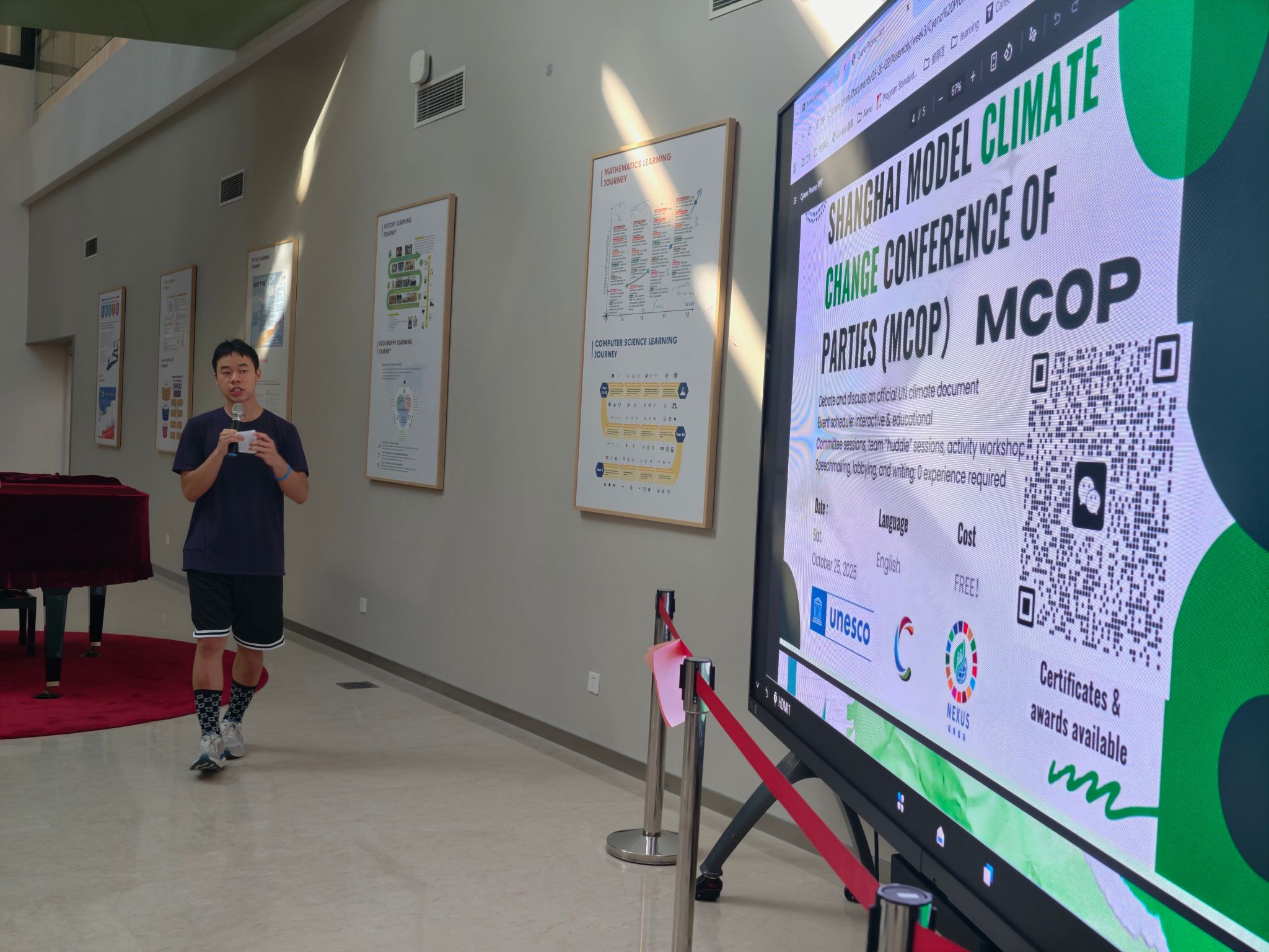 Next, representatives introduced Hongmei Primary School Teaching Program, emphasizing how students can give back to the community while forming meaningful connections. The initiative was warmly received as a chance to extend learning beyond the classroom. The spotlight then shifted to the FTC Club, where leaders invited students to explore creativity through hands-on projects. They described opportunities to design, build, and compete, stressing teamwork and innovation as central values. Finally, CYANO club shared their mission of environmental awareness and action. From recycling initiatives to their upcoming participation in a cross-school summit on October 25, the club encouraged peers to think critically about sustainability and join collective efforts to tackle ecological challenges.