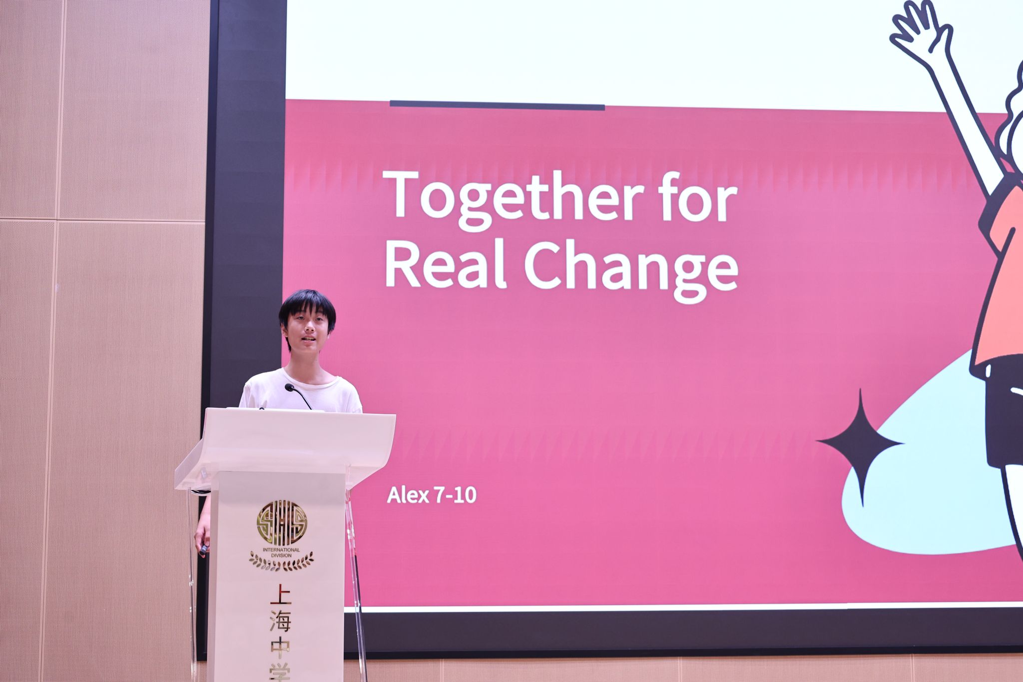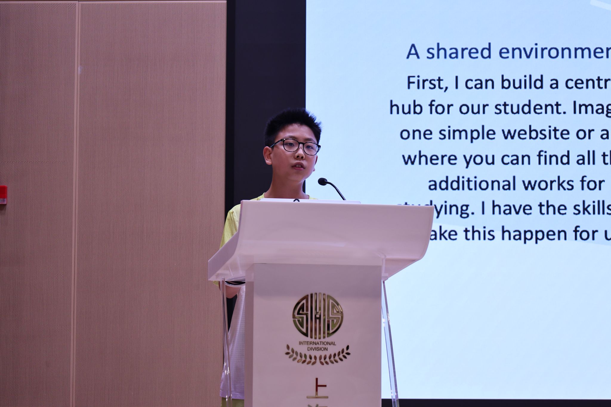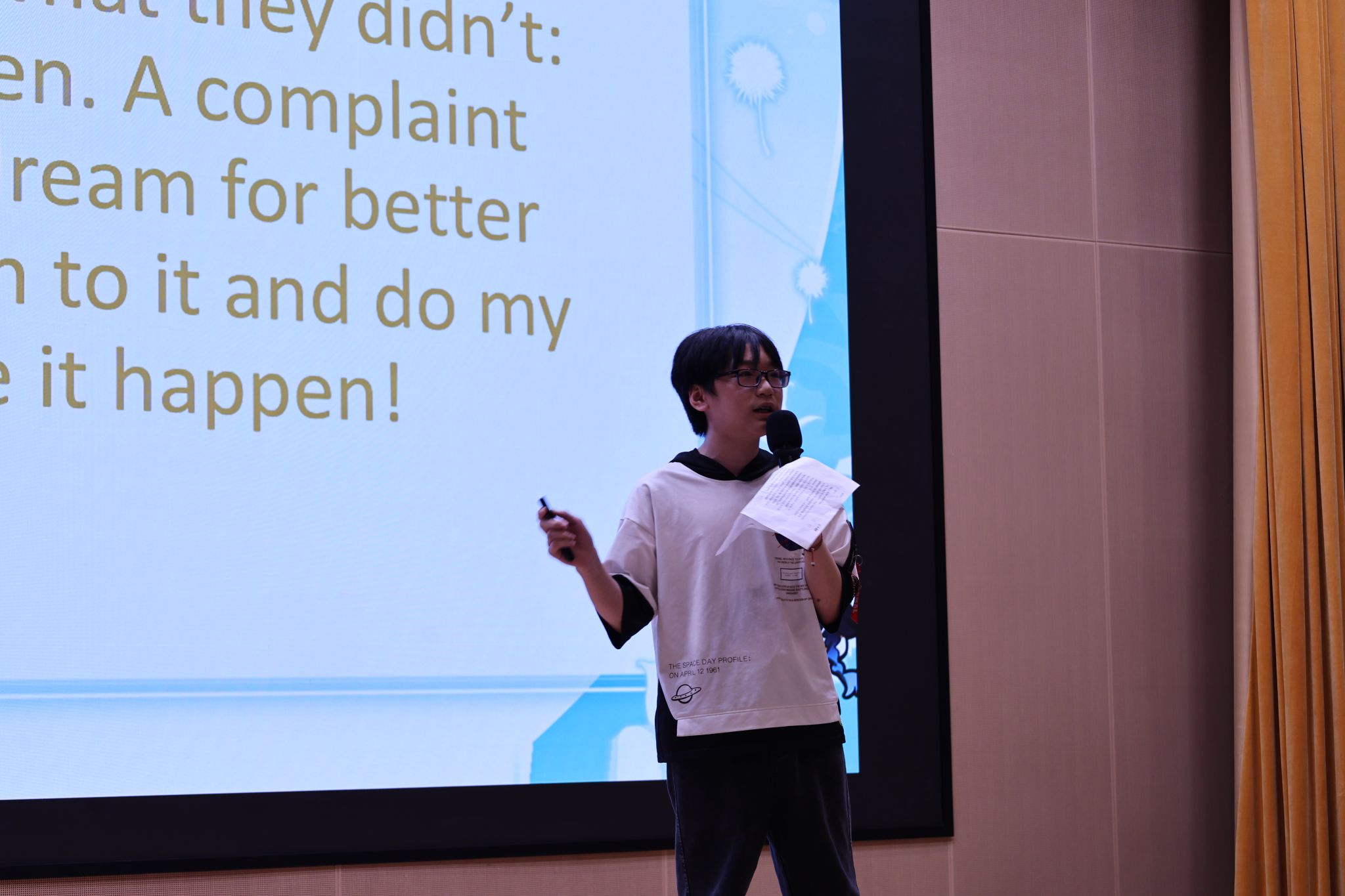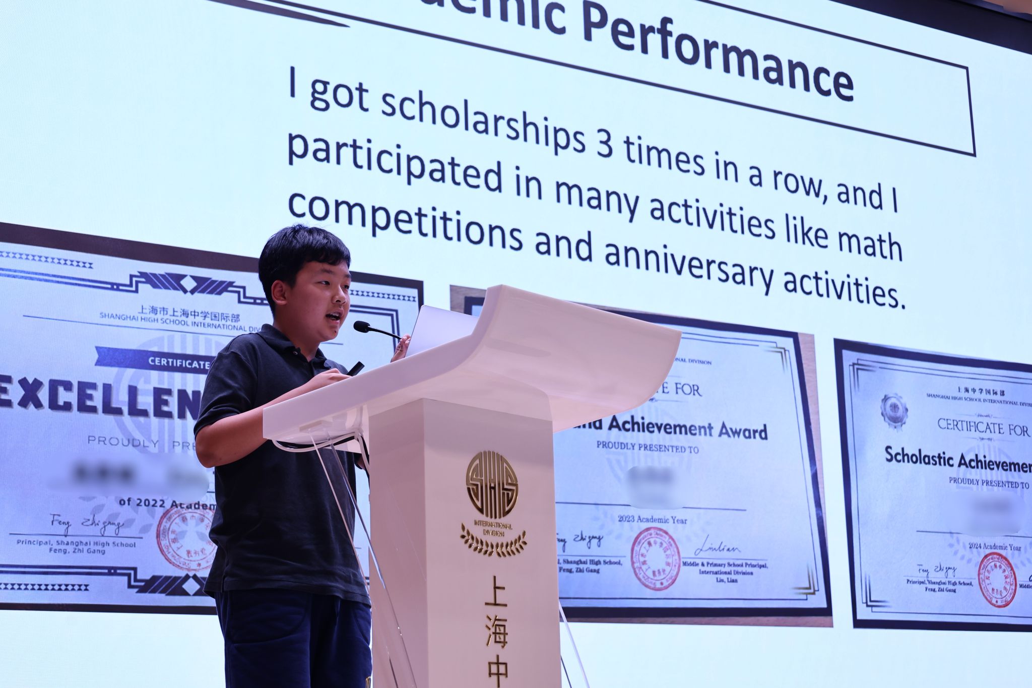 The ASB election was not only a competitive process but also a stage for Grade 7 students to showcase their talents. 23 candidates took the stage. Within the limited speaking time, they presented themselves with enthusiasm, shared their ideas, outlined their visions for serving classmates, and sketched plans for future activities. The candidates also reflected on the responsibilities of ASB members, such as managing time effectively, creating a positive learning environment, organizing diverse activities, and promoting communication and collaboration between teachers and students. Their sincere words and firm commitments reflected a deep sense of responsibility and dedication. The candidates' speeches displayed a variety of styles: some were humorous and entertaining, drawing laughter from the audience, while others were heartfelt, provoking thought and resonating with their peers. The atmosphere was lively, with students responding with applause and cheers throughout.