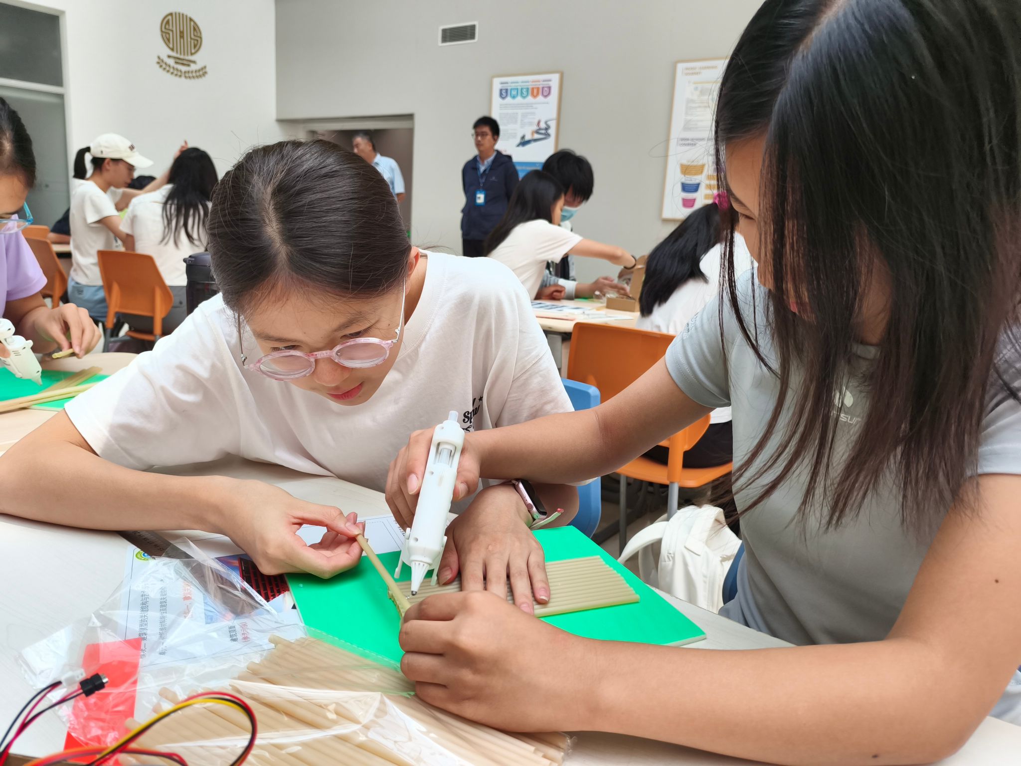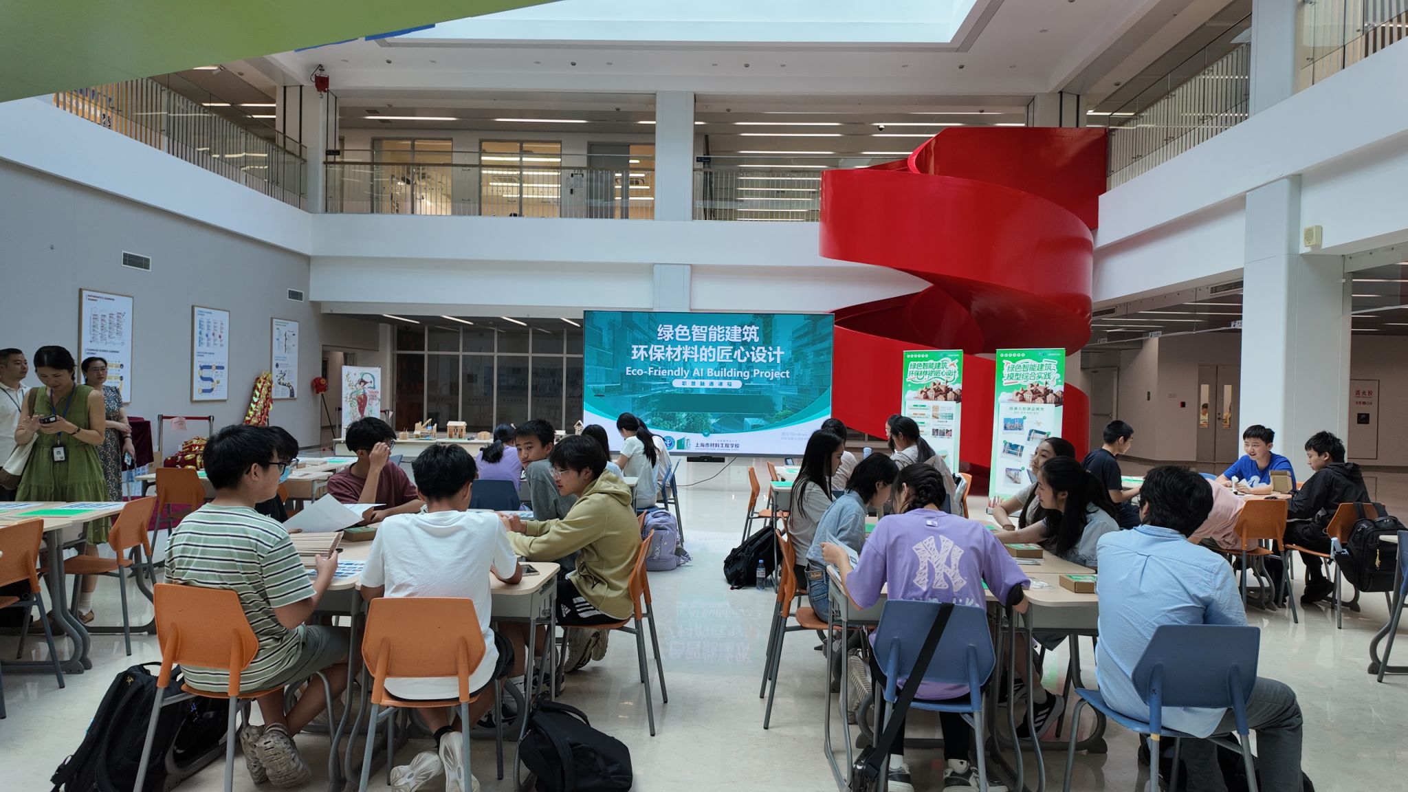 On the morning of September 26, the High School Physics Department organized a comprehensive practice class for ninth-grade students titled "Eco-Friendly AI Building Project". The course invited a professional teacher from Shanghai Materials Engineering School to systematically explain the properties and advantages of environmentally friendly recycled bamboo fiber materials. Bamboo fiber not only exhibits excellent mechanical strength, stability, and durability but also possesses remarkable moisture resistance, antibacterial properties, breathability, and thermal insulation. Moreover, as a renewable resource, bamboo has a short growth cycle and a low carbon footprint, effectively reducing the environmental impact of building materials and aligning with the development trend of green architecture. Bamboo has long held a unique place in Chinese culture—the classic saying, "Rather go without meat than live without bamboo," reflects both the elegant symbolism of bamboo in the Chinese spiritual world and its practical value in sustainable living.