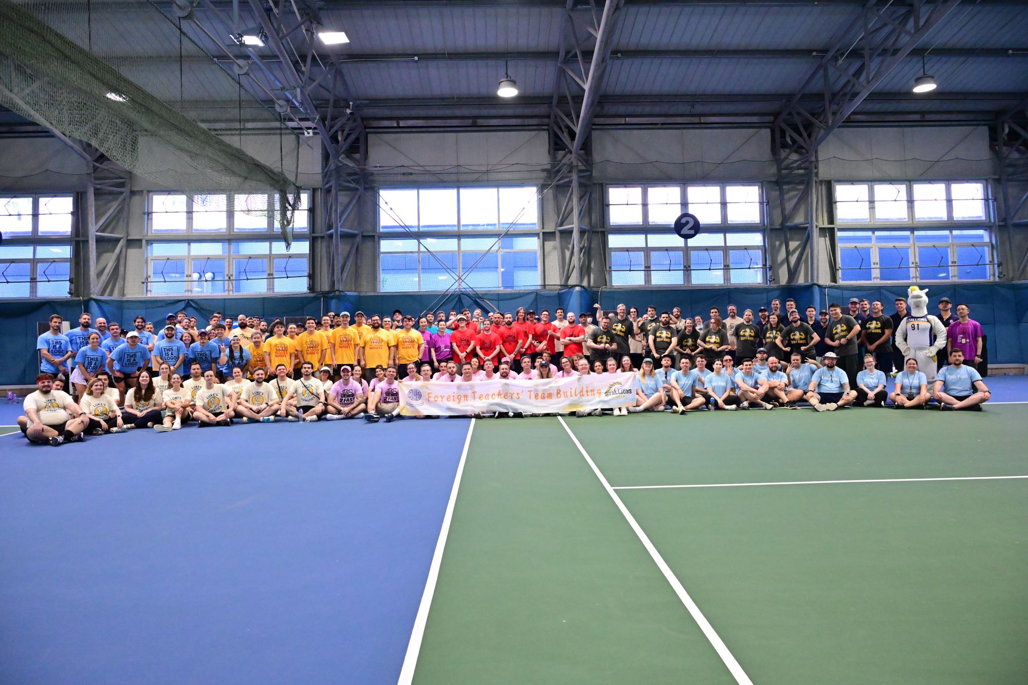 The day began with a welcome message and encouragement from Ms. Hu Bo, Assistant Principal of the High School and Coordinator of the Foreign Teachers Affairs Office. All foreign teachers then gathered in the indoor tennis court, where PE teachers led a series of fun and challenging team games, including Galaxy Jumpers (reaction challenge), Spin Doctor (focus and precision), Defying Gravity (coordination), Reaction Lights (speed test), Basketball Shooting (aim and perception), and Cone Flip (hand-eye coordination).