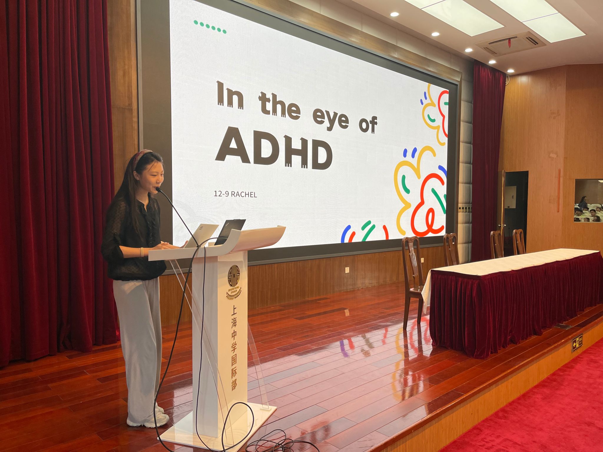 On the morning of October 10, 2025, the senior students gathered in the Xianmian Auditorium for their weekly assembly. This week’s session was led by Rachel, whose talk titled “In the Eye of ADHD” explores the causes, symptoms, and social perceptions surrounding Attention Deficit. Hyperactivity Disorder.