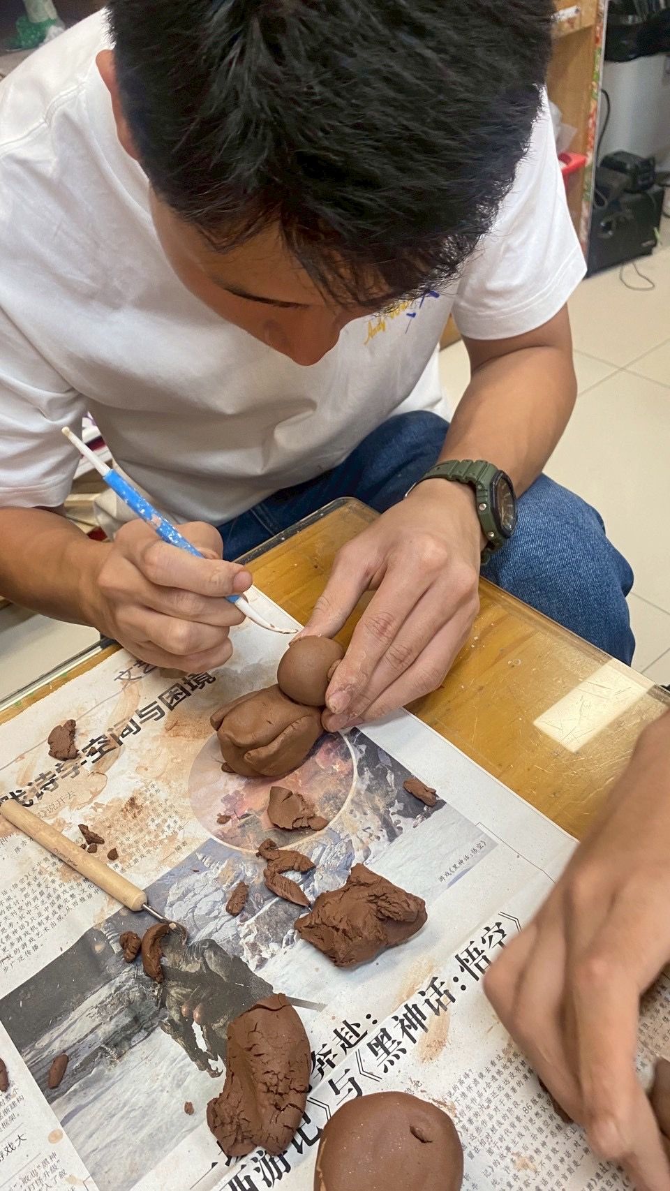 In the AP 3D Art class, the exchange group observed our students’ pottery-making process and discussed the flame patterns of Thai architecture and the spatial rhythm of the Thai curled-tail duck. Within ten minutes, they began creating: Group A crafted flame reliefs for temple ridges, while Group B sculpted curled-tail ducks seen on Thai streets. After the class, their works were set out to dry side by side and will be taken back to Thailand to share with more students, serving as a memento of cultural exchange.