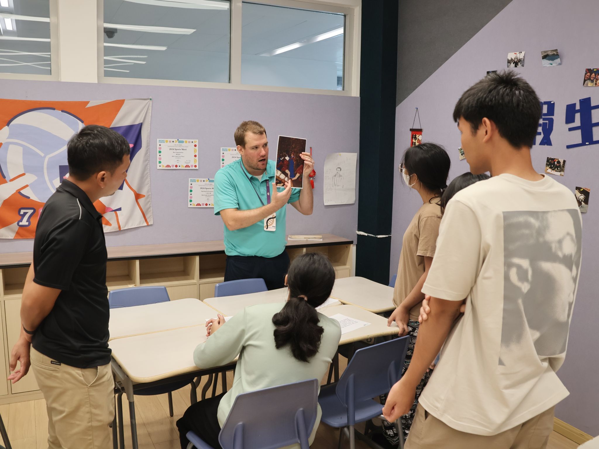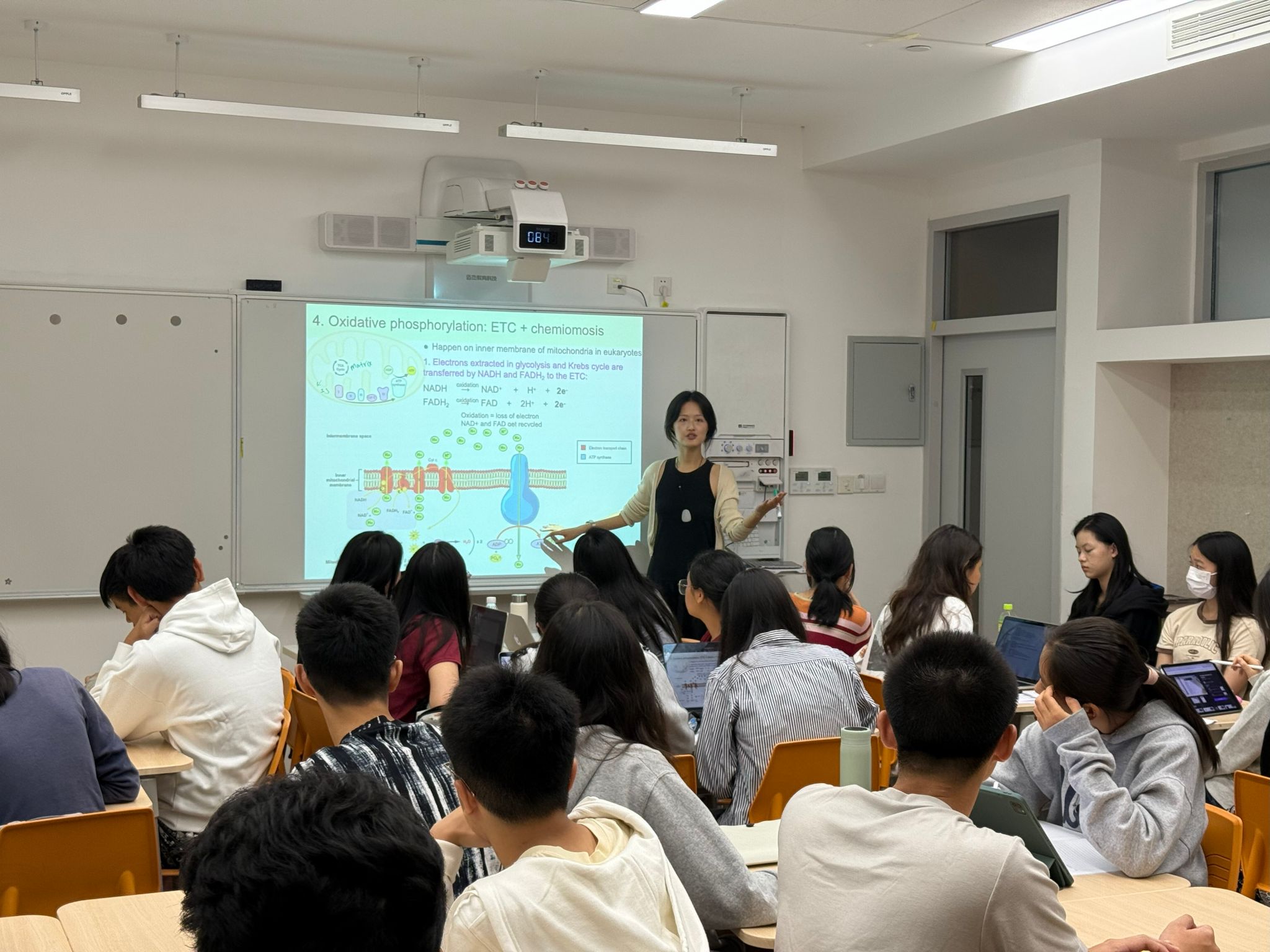In the AP Biology class, the exchange group focused on cellular respiration, reinforcing their knowledge by completing activities related to the mitochondrial respiration process. Two visiting students proactively presented their work on stage and participated in a group discussion on “Mitochondrial Mutations and Health Impacts,” showcasing their solid academic abilities.