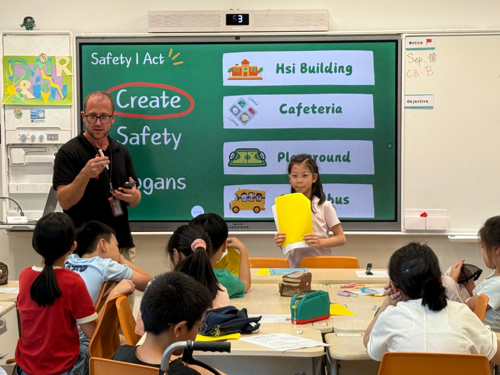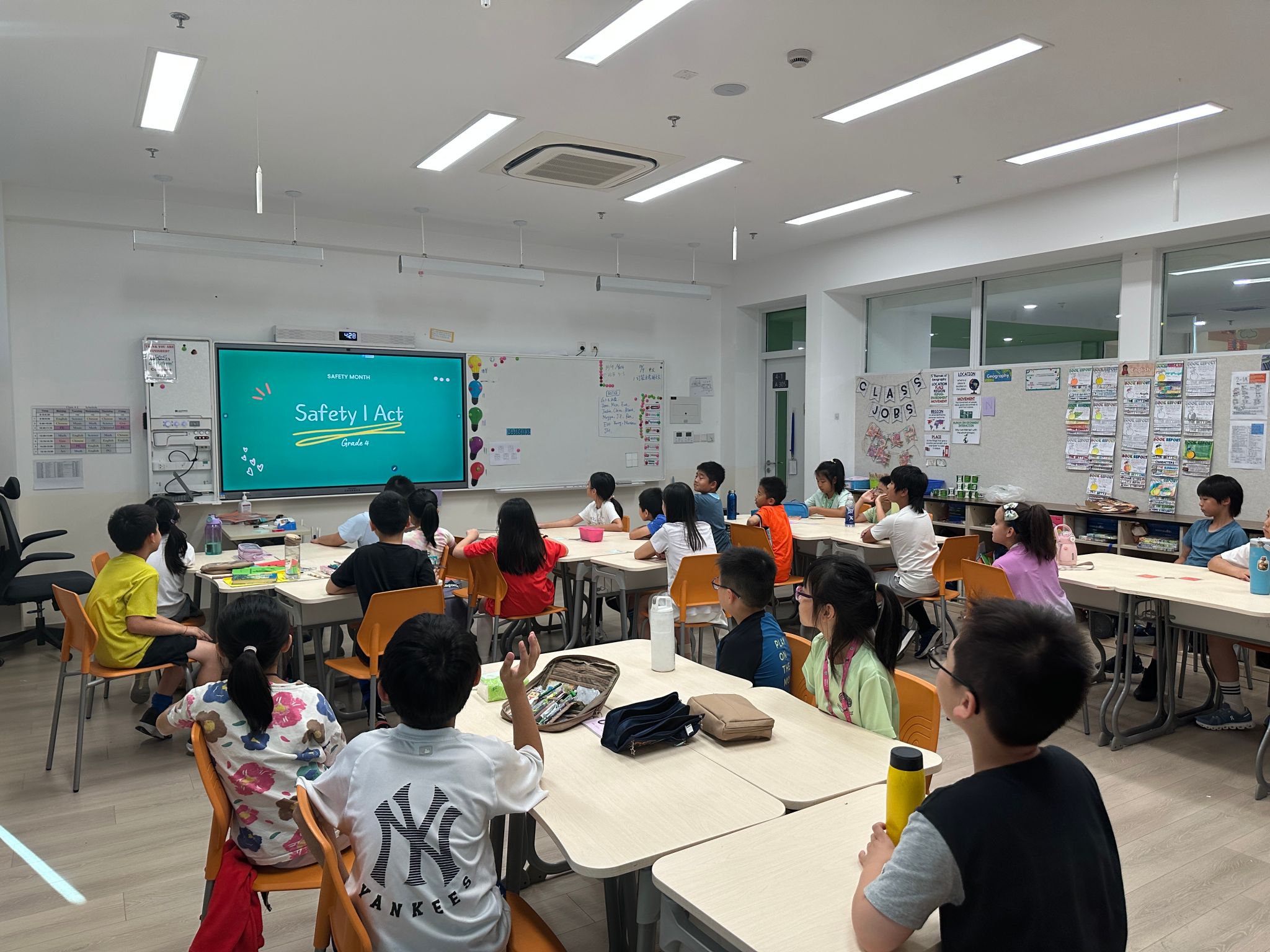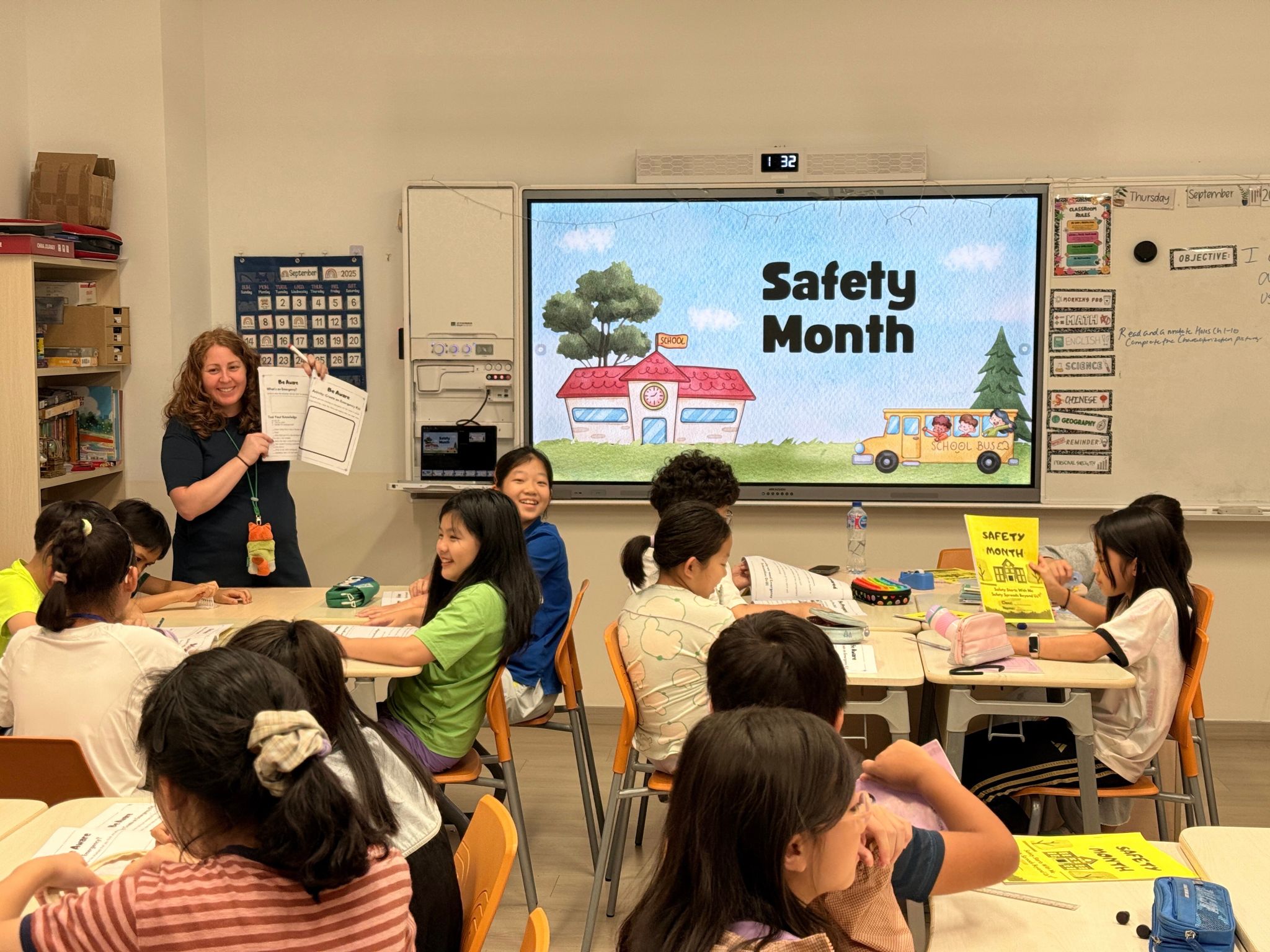 One of the most memorable moments was the Safety Presentation Activity led by G5 ASB members. After preparing slides and quiz questions, they visited first-grade classrooms to share safety tips in simple and engaging language. During the mini quiz session, first graders eagerly raised their hands to answer questions, creating a lively and enthusiastic atmosphere. Through this activity, fifth graders not only deepened their own understanding of safety but also demonstrated the leadership and sense of duty expected from senior primary students.