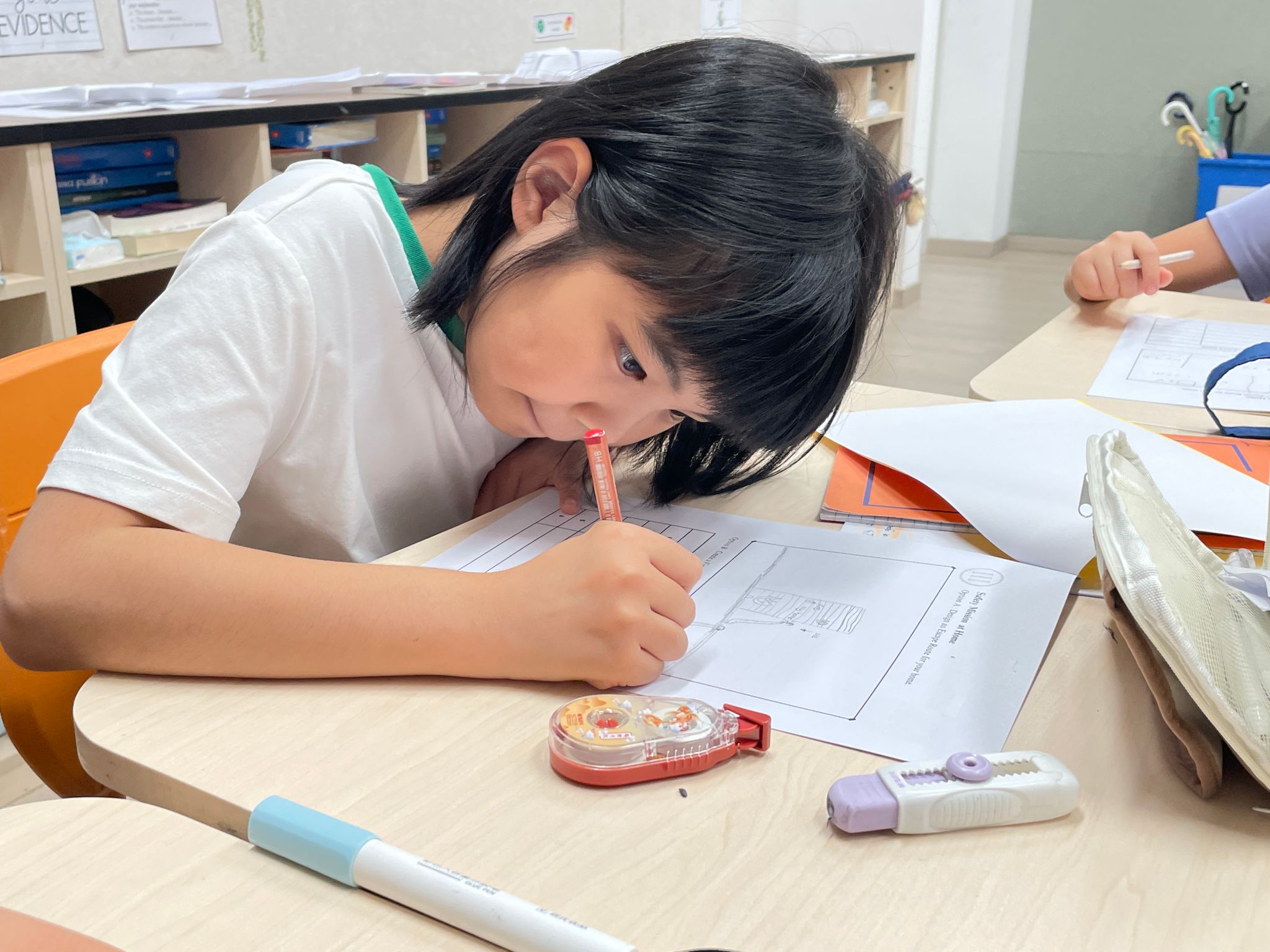 The cultivation of campus safety awareness has always been integrated into the daily fabric of school education. For the fourth-grade students in Puxi campus, the Hsi Building presented a completely new environment, so during the first week of the safety-themed program, teachers used clear floor plans to provide detailed explanations of key locations on each floor, effectively mapping out a "safety guide" for the students. In class, teachers played videos to vividly illustrate important routines like daily schedules and circulation routes, ensuring every student could navigate the new semester changes with confidence and clarity.