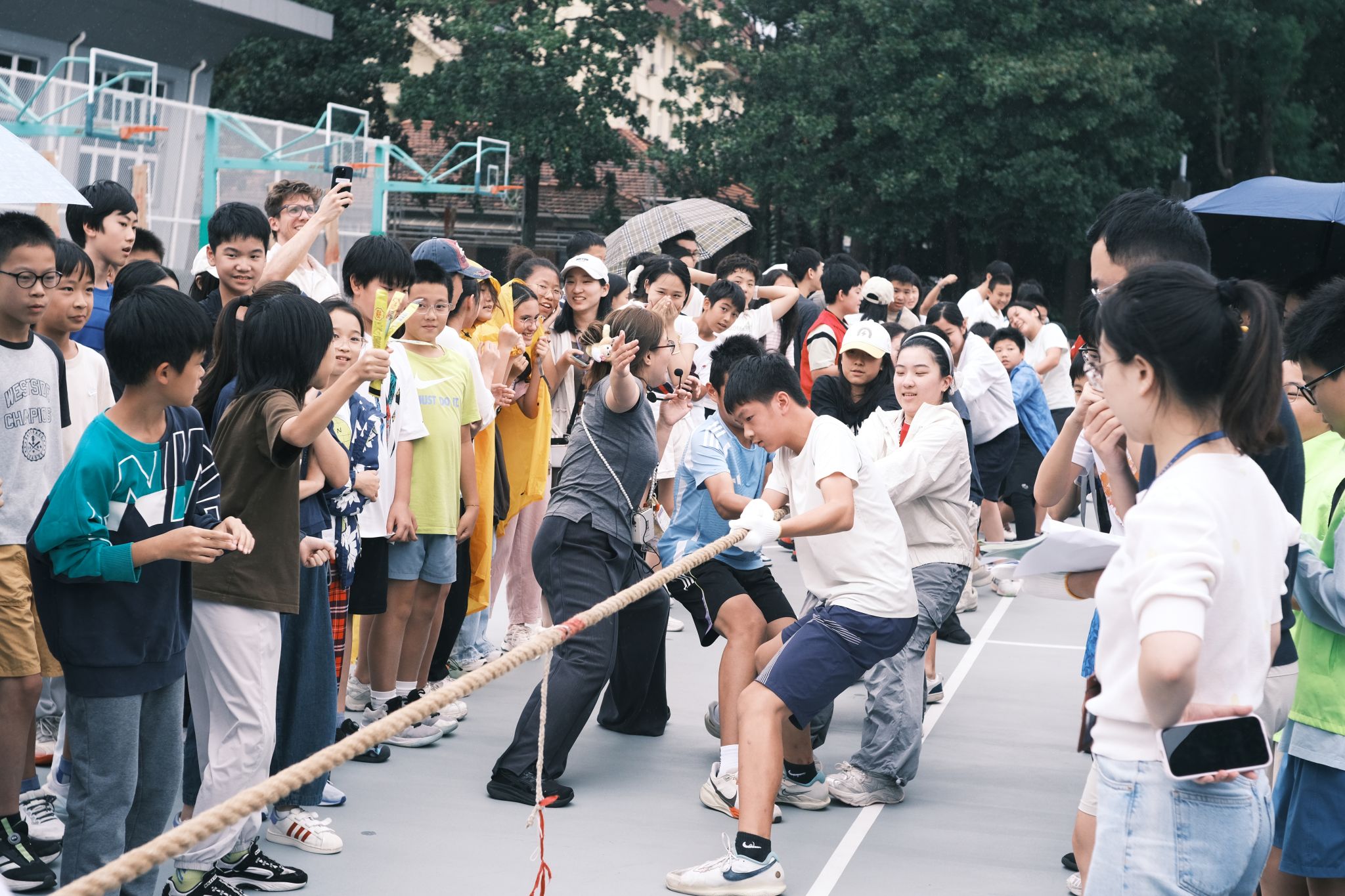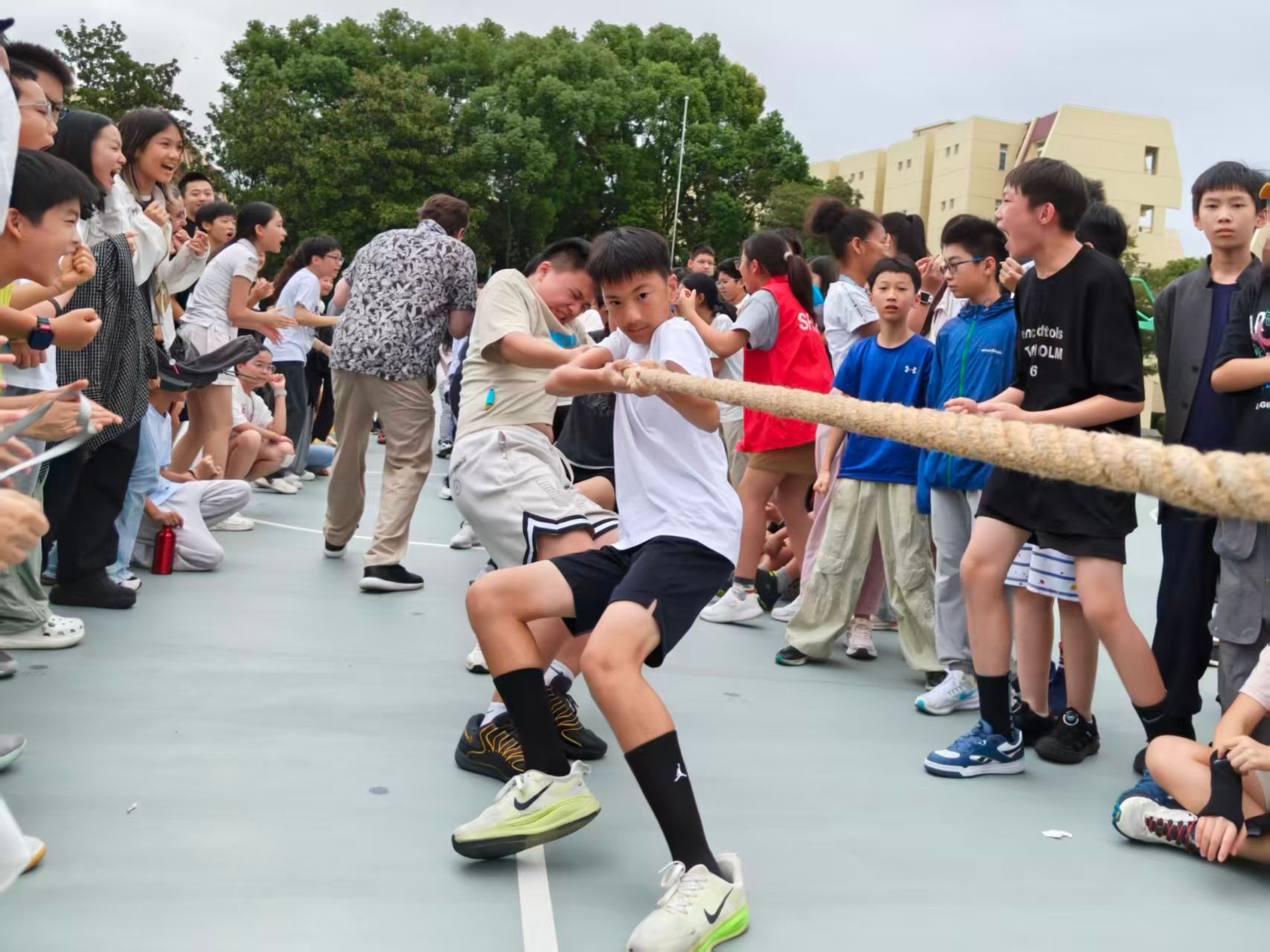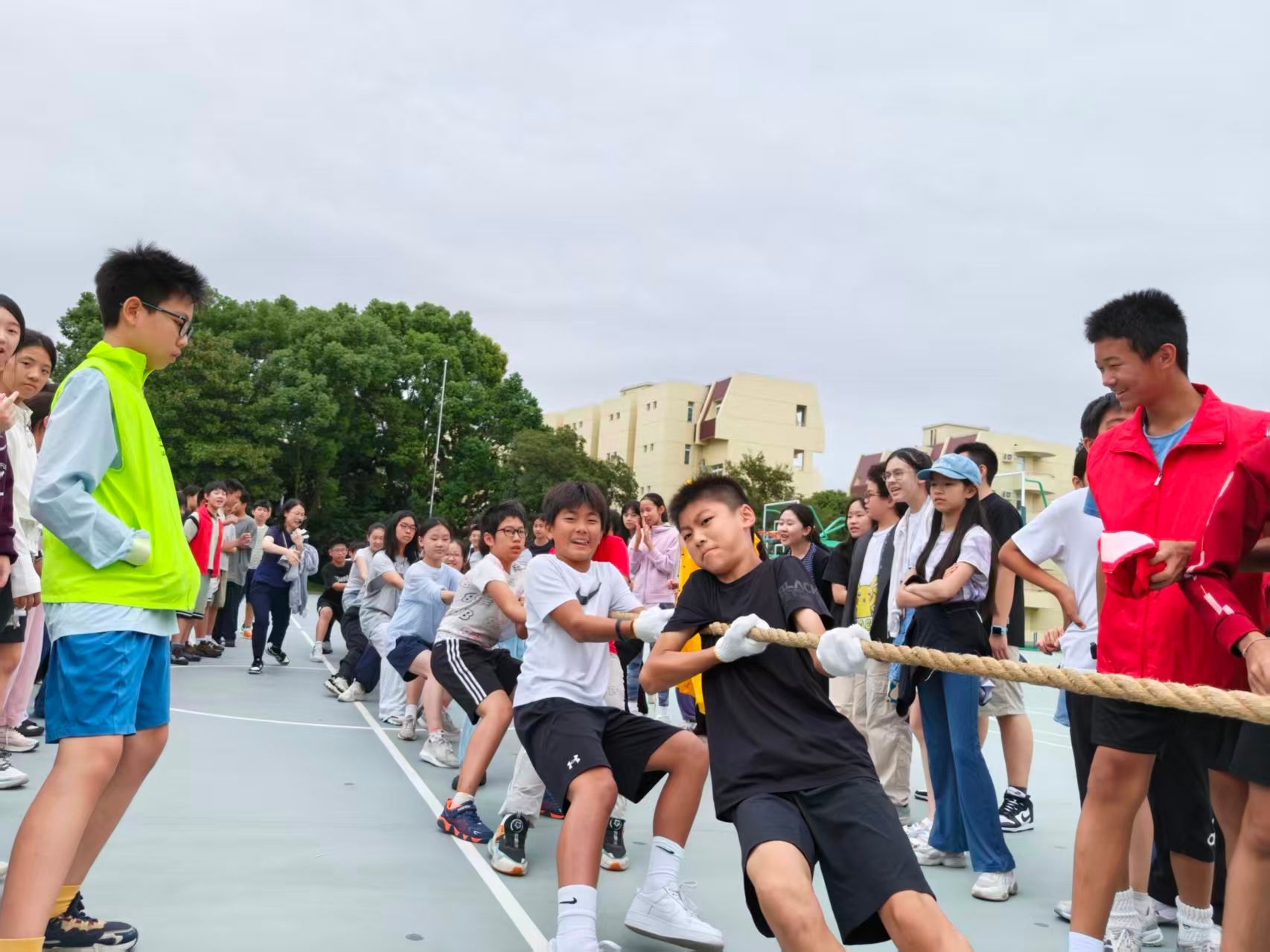 On October 16, during the YD period, Grade 7 students gathered at outdoor basketball court for a thrilling tug-of-war competition full of energy and determination.