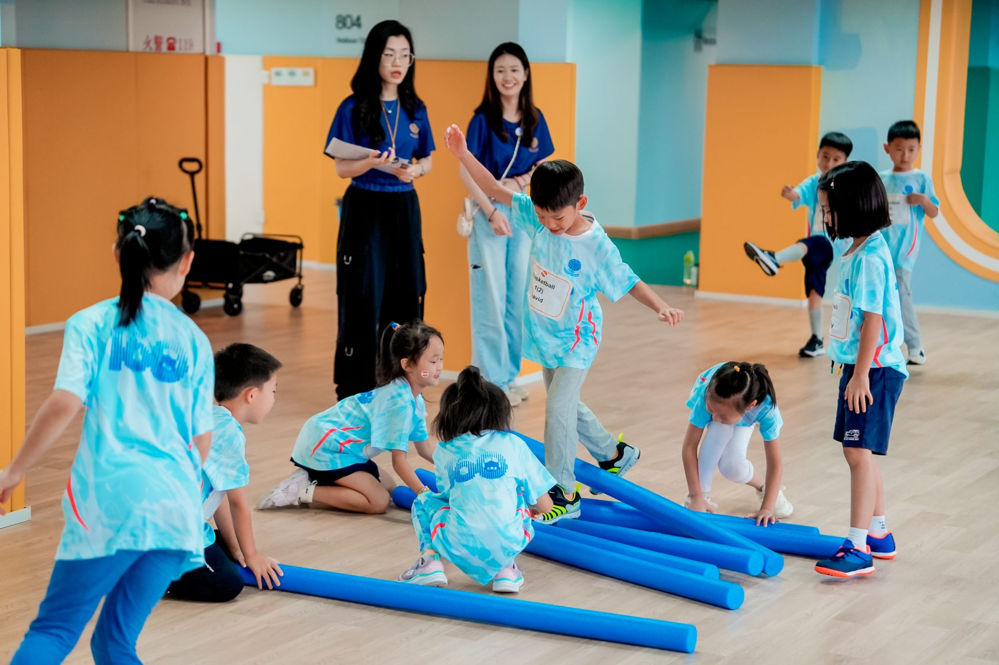 The "Obstacle Course Relay" on the field was the most intense. The children had to conquer six layers of obstacles: climbing over soft mat "hills" and crawling through colorful tunnels. When a young teammate's shoe came off while navigating an obstacle, they showed no panic. Instead, they quickly picked it up, put it back on, and immediately continued the race, while their fellow teammates cheered them on enthusiastically. As the final runner crossed the finish line, the entire team erupted into cheers and applause, sharing the immense joy of success together.