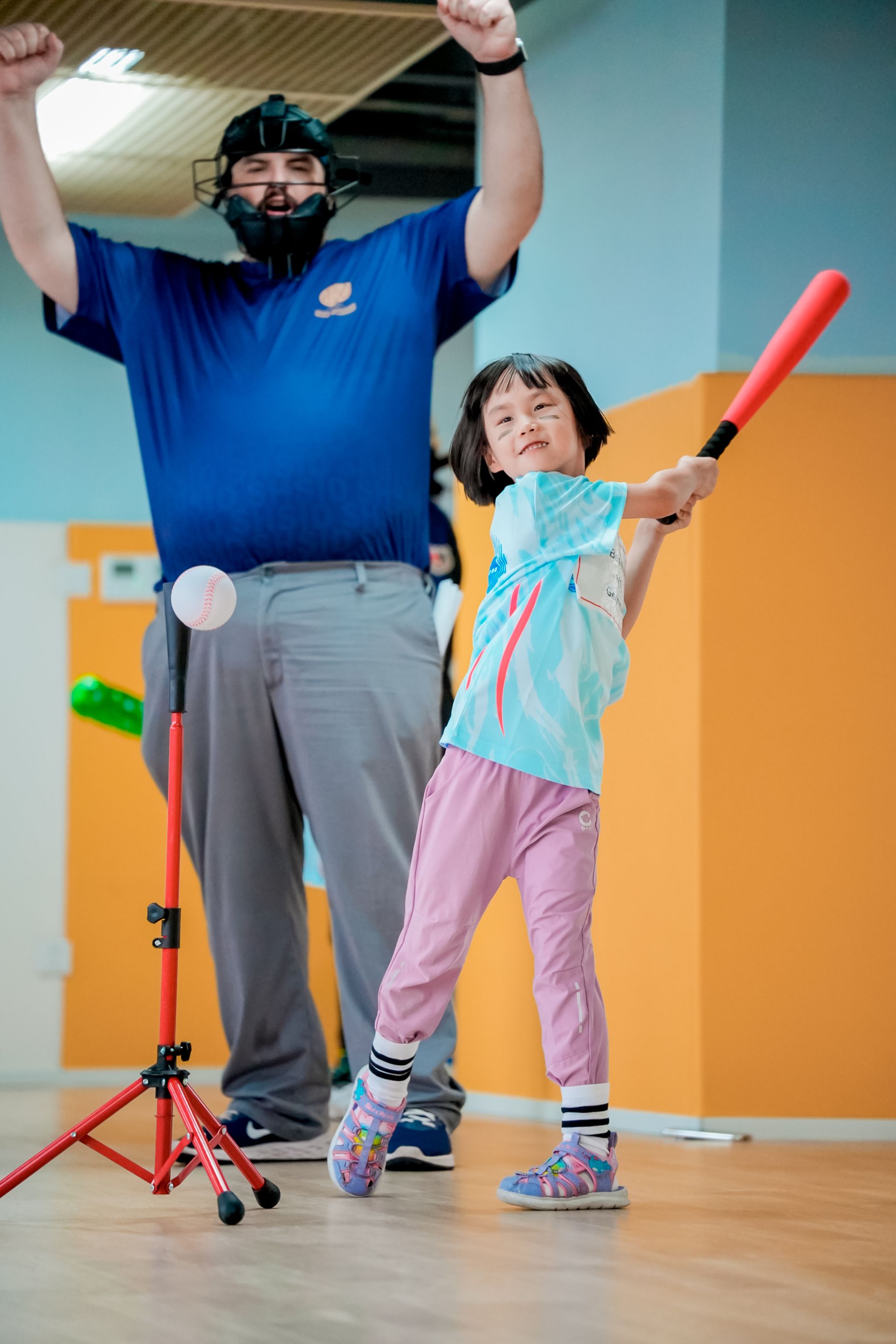 The "Home Run" area frequently erupted with exclamations of amazement. Whenever a child swung the bat hard and sent the ball flying into the distance, their team would burst into enthusiastic applause. The "NFL Quarterback Target Practice" tested the children's accuracy. They aimed carefully and threw with force, leaping for joy each time they hit the target number.