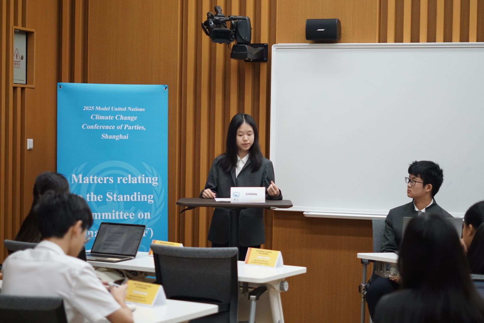 On October 25, 2025, the SHSID campus remained vibrant over the weekend as students from multiple schools convened in Zhongxing Building. They engaged in dynamic discussions on global climate governance, participating in the first-ever Youth Model Conference of the Parties (MCOP) Climate Conference in Shanghai.