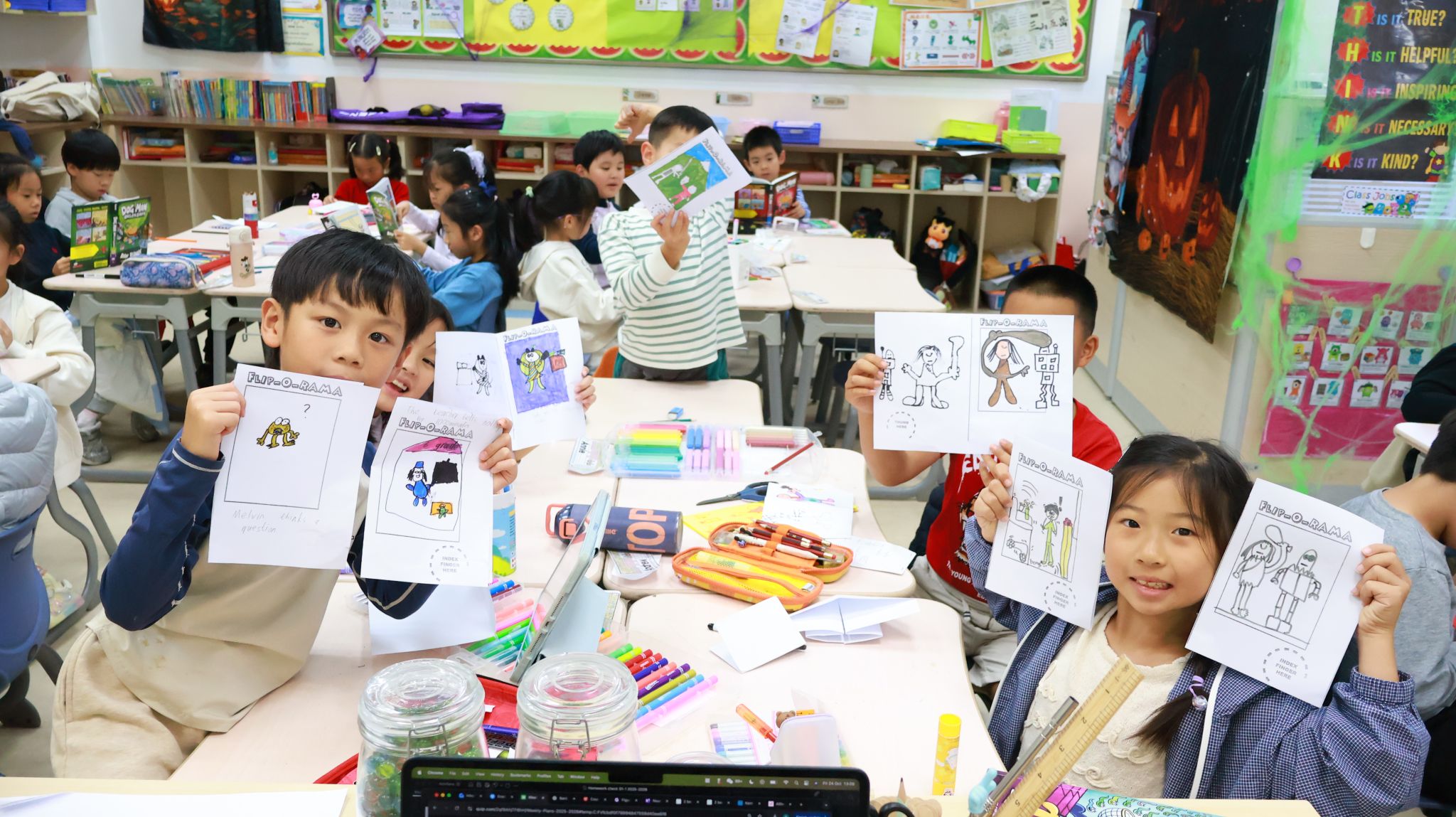 Grade 2 classes went "Tra-La-La!" for Dav Pilkey Week, honoring the imaginative creator of Dog Man and Captain Underpants. Young authors and illustrators designed bookmarks, crafted flip-o-ramas, and created their own comics. The week ended on a high note with Dress-Up Day, as students proudly showcased their creativity through Pilkey-inspired costumes. In Pudong campus, after studying Dav Pilkey‘s imaginative characters and playful language, students created their own amazing comics featuring unique characters. In Lin'gang campus, the students showed off their imagination during Crazy Hat Day, designing their own amazing and unique hats.