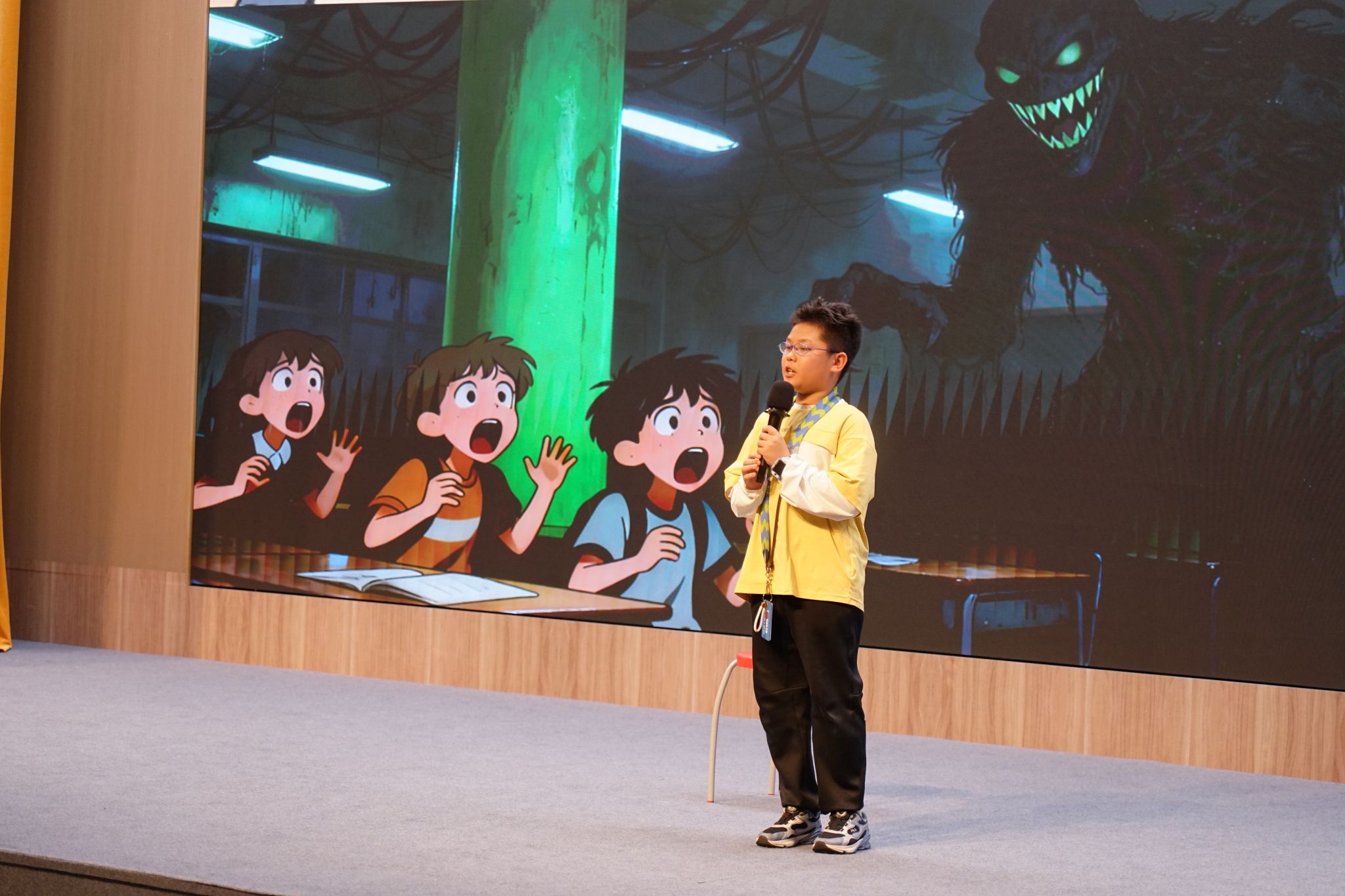 The six finalists took the stage one by one, guiding the audience into their uniquely constructed story universes: Teo "The Missing Stationery" started with a seemingly ordinary family conflict, revealing the often-overlooked warmth within familial bonds. 6-4 Elena's time-travel suspense captivated the listeners, where a girl uncovers family truths woven between history and reality. During the plot twist, waves of amazement swept through the crowd, everyone holding their breath, completely immersed. Josie from 6-5 told a story about honesty and redemption. When the magic mirror exposed Maya's lies, synchronized sighs of realization arose from the audience; and when three generations worked together to repair the vase, the heartwarming scene brought touched smiles to many faces.